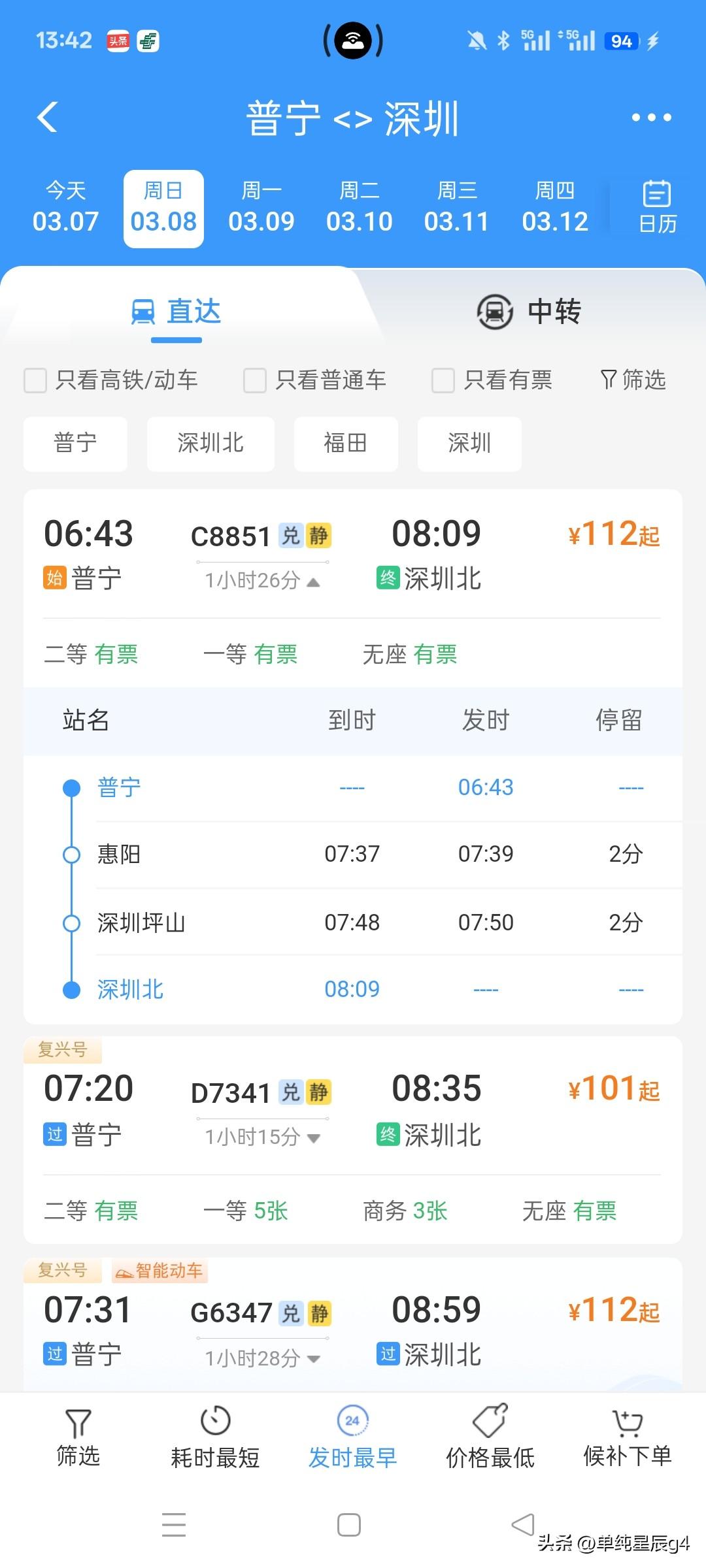 普宁站有两趟始发列车,一趟去往广州,一趟去往深圳,还有一条铁路在建 普宁站,是位于广东东部揭阳市的普宁市的一座高铁站,2013年随厦深高铁一同开通运营,开通十几年,成为了普宁市唯一的铁路客运站,也是重要的铁路枢纽,客流量极大,经常进入广东繁忙高铁站行列。 普宁站站台规模二台五线,日到发车次约有158趟,呈现公交化列车开行密度,主要连接省内深圳和省外厦门方向。并且随着汕汕高铁全线通车,普宁站到发的车次也更聚焦于普宁出发的乘客,厦深高铁的热度不减。 普宁站,结合厦深高铁富余运力资源,开行两趟始发城际动车组,C8851,普宁站始发,一个半小时到达深圳北站,C6781,普宁站始发,两个小时20分钟到达广州南站,是普宁站选择始发出行方式的重要选择。 在建中的揭惠铁路也由接入普宁站,高铁和普速并站,预计2027年通车,开行粤东城际铁路专线列车,普宁站交通枢纽地位进一步巩固与完善,可以北去揭阳,南去惠来,通过城际列车。 普宁站所处的普宁市也是广东的人口大市,人口超200万,这里也是全国最大的衬衣生产基地,女士内衣家居服产量占全国40%以上,重要的工业基地,而普宁高铁站正好服务于这个庞大的工业产业区。 普宁市,还是拥有多个文化遗产的数万人的文化家园,普宁英歌是非物质文化遗产,普宁豆酱也是特色美食之一。