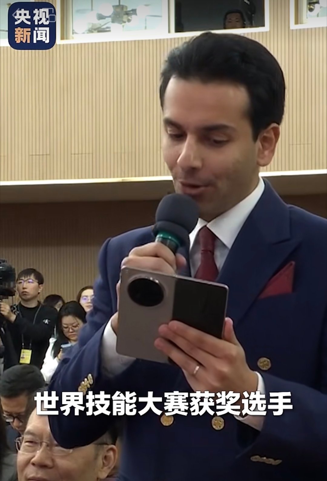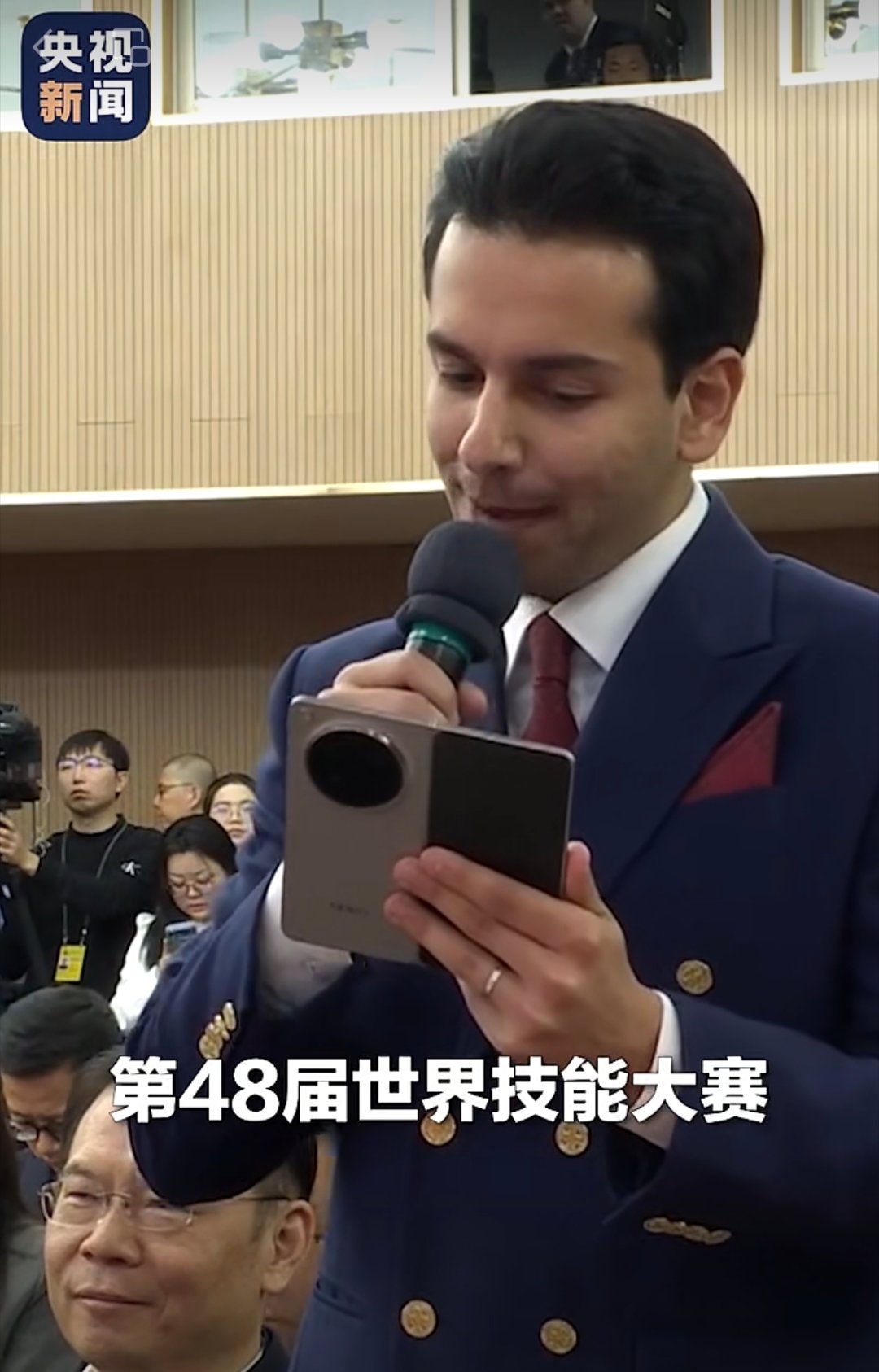 央视频的记者大会视频里面,记者提问时手里拿的这个折叠屏,应该就是Find N6了