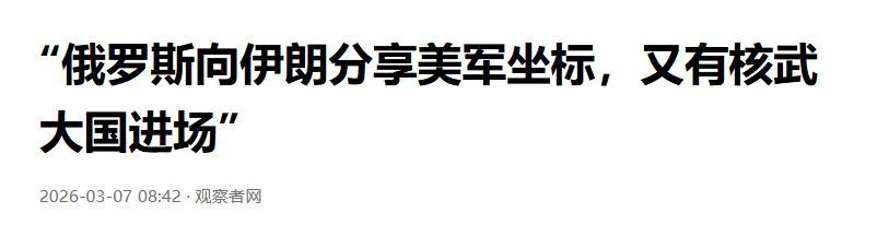 大国默契!美媒:俄罗斯向伊朗分享美军坐标!五角大楼拒绝回应 中东混战又出现了核大国入场,美国媒体华盛顿邮报3月6号报道,说三名熟悉情报的美军官员已经指出俄罗斯正在向伊朗提供攻击美军在中东地区目标的相关信息。这其中甚至包括军舰和战机的一些具体位置。 这还了得,战争打的就是信息差,把这些情报提供给伊朗,俄罗斯这不是等同于帮着伊朗打美国吗?这个超级大国岂能咽下这口气? 然而美国的相关媒体爆料了这则消息之后,无论是白宫,五角大楼或者是情报局对此事的回应都是高度的一致——不予置评。美国媒体甚至还联系到了克里姆林宫的发言人佩斯科夫,得到的回应也是不予置评。 这是什么情况?难道美国人就这么忍气吞声吗? 在我看来,其实这正是两个核大国的默契。在给自己的敌人发送相关情报这件事情上,美俄实际上是处于一种“你做初一,我做十五”的状态。 俄乌战争爆发以来,美军多次通过各种情报网络收集信息,然后分享给乌克兰军队,帮助乌克兰军队精准的攻击俄罗斯的军事装备和重要高层目标。这实际上已经是公开的秘密了。而这次美国和以色列疯狂的攻击伊朗,俄罗斯同样也把自己掌握的一些信息与伊朗进行分享,帮助伊朗有效的反击美军,这样做也是合情合理的。 美国人和俄罗斯心里都非常清楚,所以才会出现这种不予置评的一致态度。