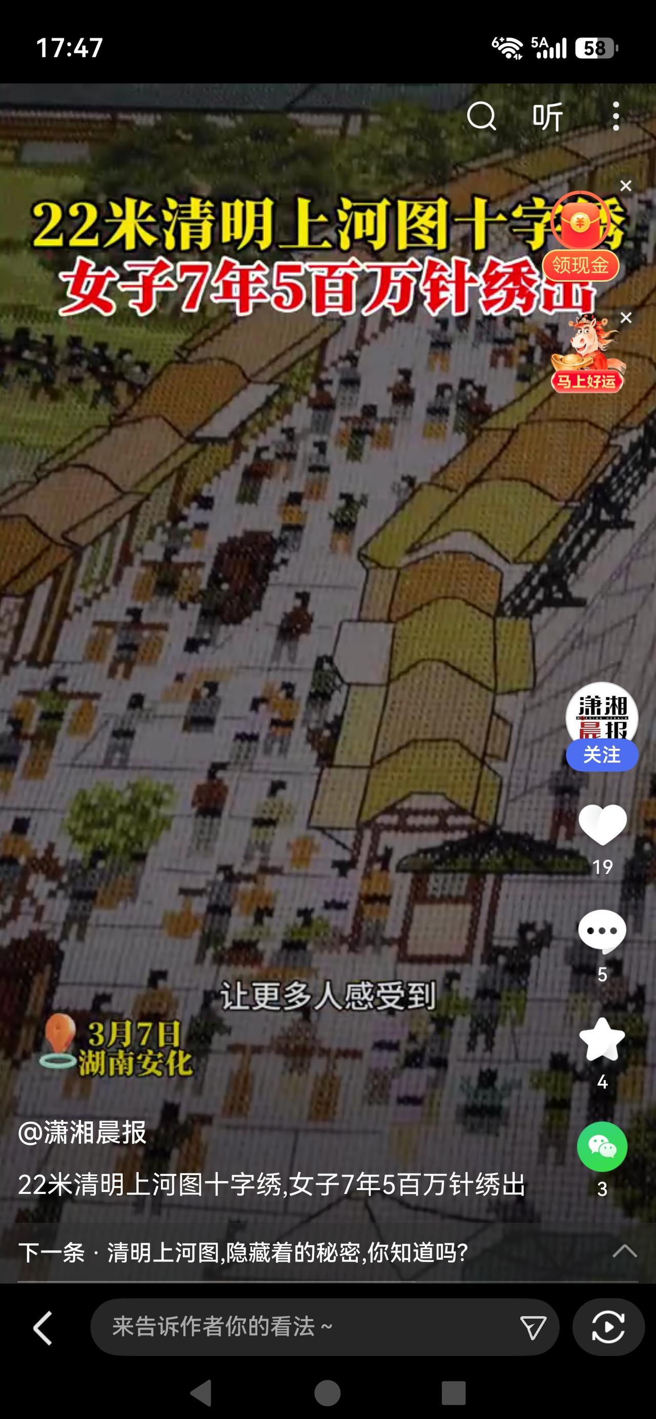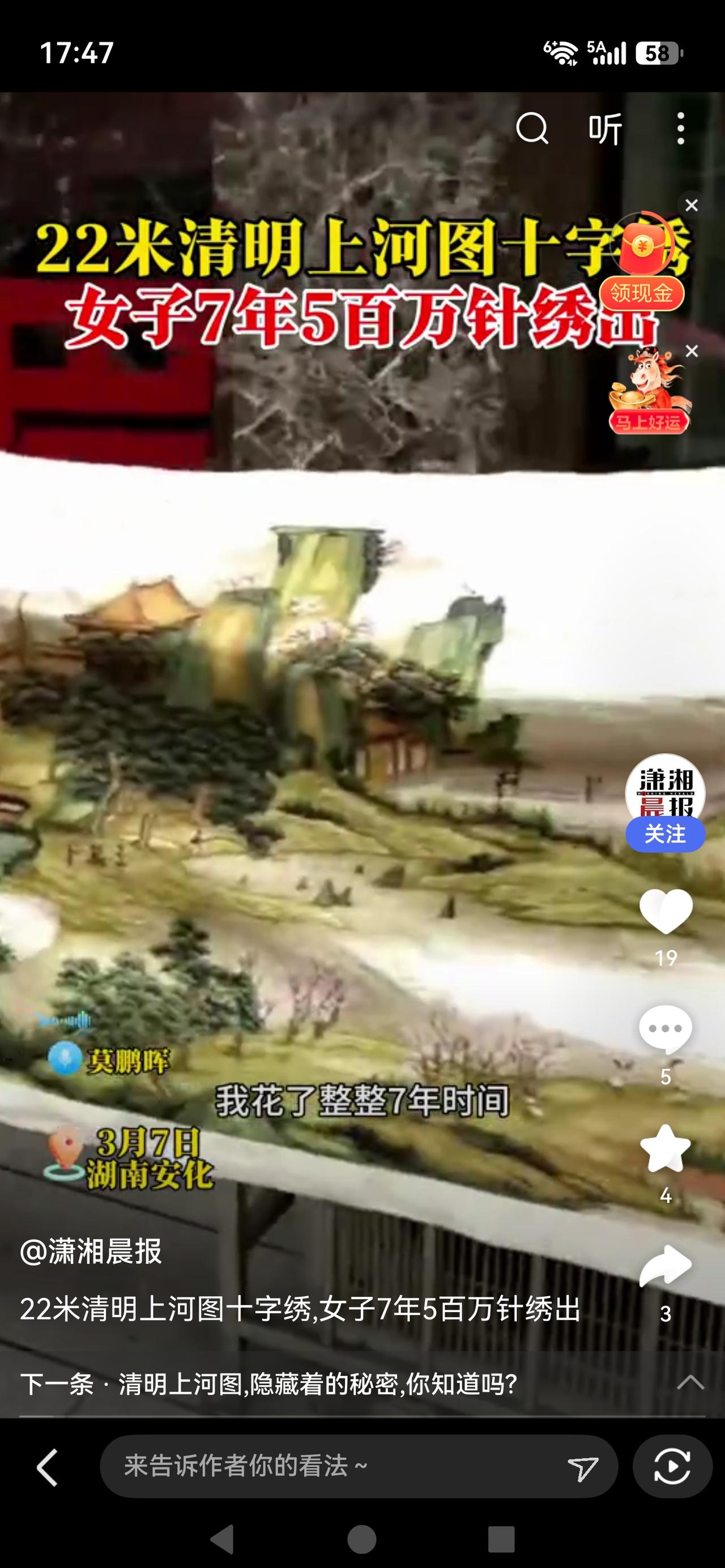 《7年青春换22米国宝!女子500万针绣出清明上河图,网友:一针一线都是传奇》 别人刷手机、追剧、消磨时光的7年,她把自己“钉”在绣架前,一针一线,绣出了一幅震撼国人的22米《清明上河图》。500万针,不是冰冷数字,是两千多个日夜的坚守,是常人难以想象的枯燥与专注。 这幅长卷里,800多个人物神态各异,车船屋舍栩栩如生。她没有高薪、没有团队,只是凭着一股“既然开始,就要做完”的倔劲,在琐碎日常里挤出时间,耐住寂寞、顶住疲惫。绣错了拆,拆了重绣,手指磨出厚茧,针线不知用断多少根。在快节奏的今天,人人追求速成、渴望捷径,而她用最“笨”的办法,把一件事做到极致。 这哪里是刺绣,这是普通人对抗浮躁的底气。它告诉我们:真正的了不起,从不是天赋异禀,而是日复一日的坚持;真正的珍贵,从不是一夜成名,而是沉下心来打磨自己。浮躁社会里,最缺的就是这种“慢功夫”,最难得的就是这份“不放弃”。平凡人用专注与热爱,也能书写不平凡的传奇。 看完只有两个字:佩服!现在太多人三分钟热度,什么都想快,什么都想赚快钱,却忘了静下心把一件事做好。这位女子用7年光阴,绣的是古画,修的是心性,赢的是人生。 这才是真正的匠人精神,不喧哗,自有声。愿我们都能少一点浮躁,多一份坚持,把普通日子,过成自己的传奇。为这份执着点赞,为平凡人的了不起点赞!热点话题 女子7年500万针绣清明上河图