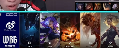 WBG选用:Zika纳尔,Jiejie梦魇,Xiaohu岩雀,Elk芸阿娜,Erha芮尔