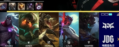 JDG选用:Xiaoxu鳄鱼,Junjia大树,HongQ永恩,GALA韦鲁斯,Vampire泰坦