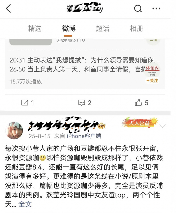 疑似《小巷人家》的原作者点赞“哪怕zyk毁剧毁成这样,小巷还能豆瓣8.4"微博