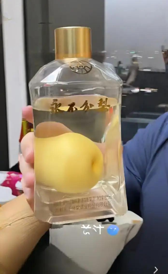 开箱“永不分梨”白酒,整颗雪梨完整封在瓶中,很多人都好奇它是怎么进去的。其实并不是硬塞进去,而是在梨子还小的时候就套上酒瓶,挂在树上自然长大,成熟后再灌装白酒。满满巧思,颜值与寓意兼备,难怪一开箱就惊艳众人。