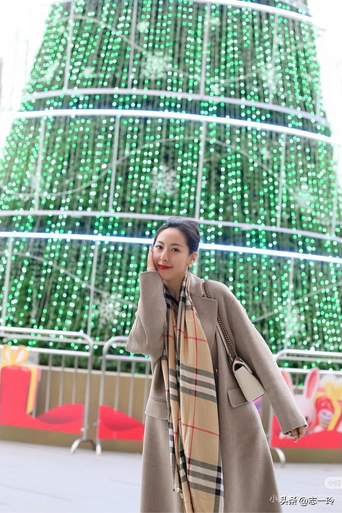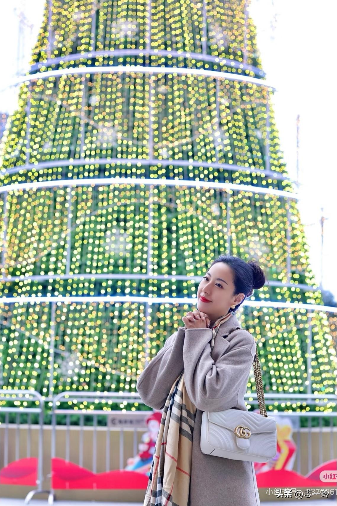 春日暖阳下,时尚都市女孩与璀璨圣诞树相映成趣。