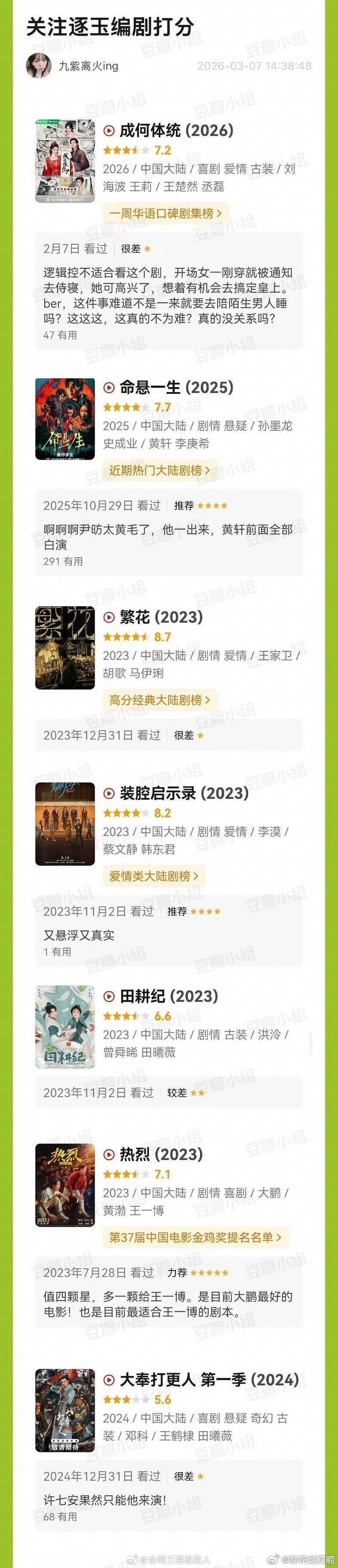 我真的很好奇到底什么样的剧才能入逐玉编剧的眼啊,沉默的真相和伪装者都说较差,胡歌