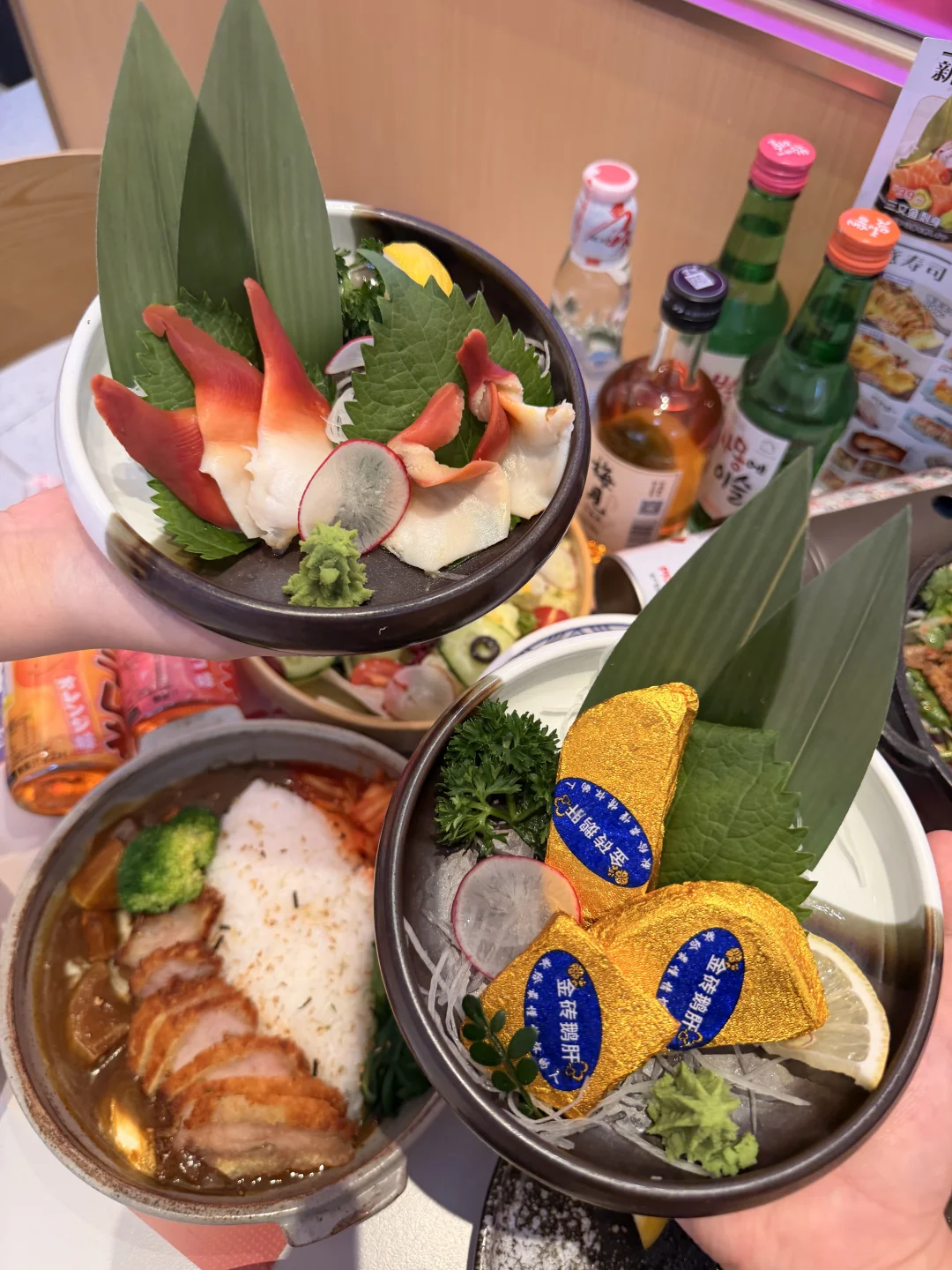 不在东京!!梅州的花漫里日料店🌸樱花主题好治愈🍣,被这粉橘调氛围吸引啦[萌萌哒R]温柔又出片👫约会小聚都很合适!! 个人觉得这几道可以闭眼点👇 🥓窝蛋肥牛烧🍝黑椒牛肉意面🐟盐烤三文鱼头🥠北极贝刺身 🧈金砖鹅肝 🍱蒲烧鳗鱼饭鱼肉微甜软嫩无刺,🧈金砖鹅肝绵密如冰淇淋入口即化,丝毫不腻!!🐟盐烤三文鱼头外皮焦香、肉质鲜甜,挤上柠檬汁超绝👍🏻,像🥠北极贝刺身 🥓窝蛋肥牛都蛮好吃的(其他菜品看个人口感)。 店里挺多选择的,还有拉面/烤肉/小吃/牛肉饭/牛排/披萨/沙拉/甜点/饮料/寿司/刺身等~~
