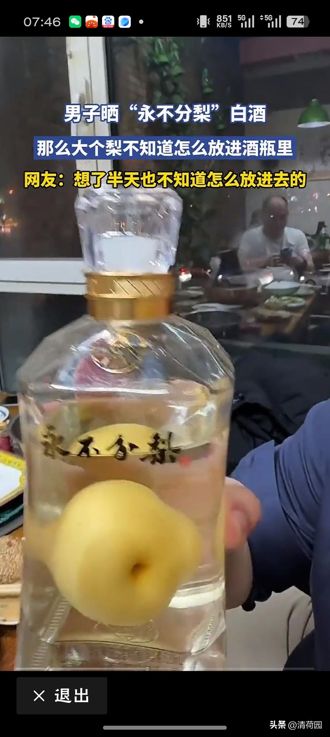 男子晒“永不分梨”白酒这酒里的梨,不是在瓶口“钻”进去的,而是在枝头“长”进去的——当幼果遇上酒瓶,便成就了一段“永不分离”的浪漫。这不仅是农业与工艺的奇妙共生,更是中式浪漫最含蓄又最热烈的表达:把“永不分离”的誓言,酿进时光,封存在酒里,让每一份情谊都如这瓶中梨,圆满、纯粹,历久弥新。