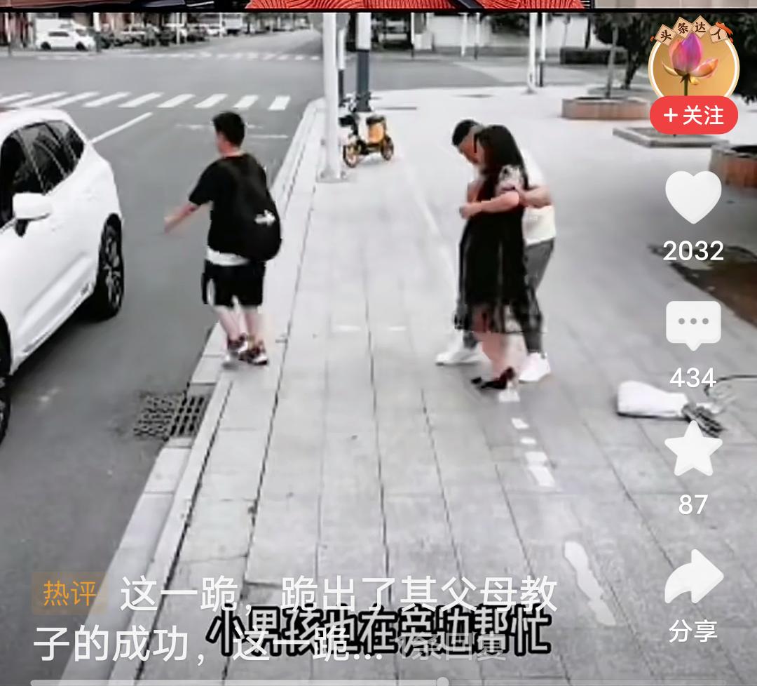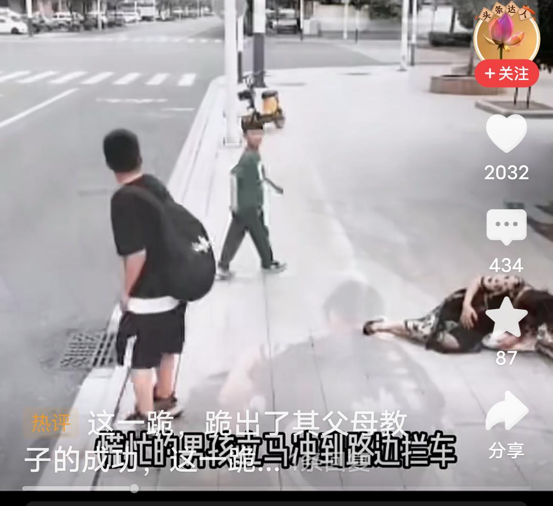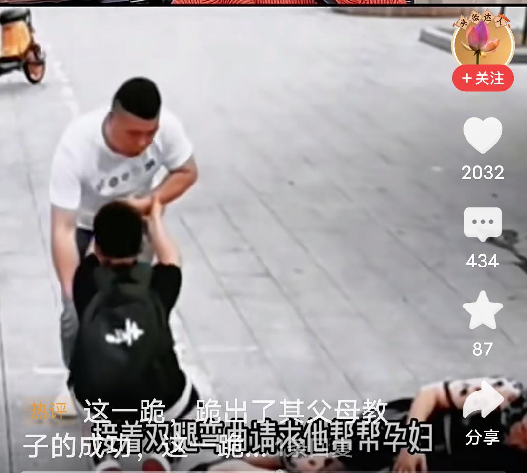 全网都在寻找这个男孩!监控下拍到的这一幕温暖了全网! 从视频中看到,一个孕妇买菜回来,在路边突然肚子疼痛难忍,跪倒在地上,她的孩子要出生了,她疼的满头大汗,不停的挥手,向路上的行人求救。 这个时候,一个去上学的小男孩恰巧经过,问明情况后,就赶紧到路边拦车。 路上几乎看不到一辆车,即便有车经过,也没人给他停下来,急的他不停在孕妇和马路边来回走,不停的安慰着孕妇。 这个时候一辆车开了过来,好心司机下车问明情况,一听送医院的路和自己不顺路,摆摆手就要离开,这个时候令人震惊,也令人感动的要流泪的一幕发生了: 只见这个男孩扑通一下跪倒在这个司机面前,恳求他帮帮这个孕妇,司机被感动的瞬间泪目,赶紧扶起来这个男孩,决定先送孕妇去医院,男孩一起帮忙,还贴心的把孕妇的包捡起来,目送着车离开,这才转身去上学。 这一跪,跪的我是泪流满面,为了救一个素不相识的孕妇,竟然给司机下跪,这是一个多么善良而又有爱心的男孩啊! 这个男孩跪下的膝盖,比无数站着的冷漠大人更高大! 看到这一幕,非常的感动,孩子的优秀不在于他的成绩有多么好,考多少分,最重要的我认为是他的人品、他的善良已经远远超出一切。 这个男孩心中有大爱,正是他的善良,也感动了司机。 善良的男孩背后,一定有善良的家长。有一个良好教育的家庭,才能培养出这么善良的孩子。这孩子真的是真心真意的救人,他也没想过男儿膝下有黄金,他这一跪比黄金还闪亮! 善良的孩子,有担当有勇气的孩子!你的一跪感动了无数的国人!你的一跪让我们看到了人性的光辉!你的一跪让我们看到了我们民族和国家美好的明天! 为善良的孩子点赞!为善良的孩子的父母点赞!在他以后的人生道路上,他一定会闪闪发光的!