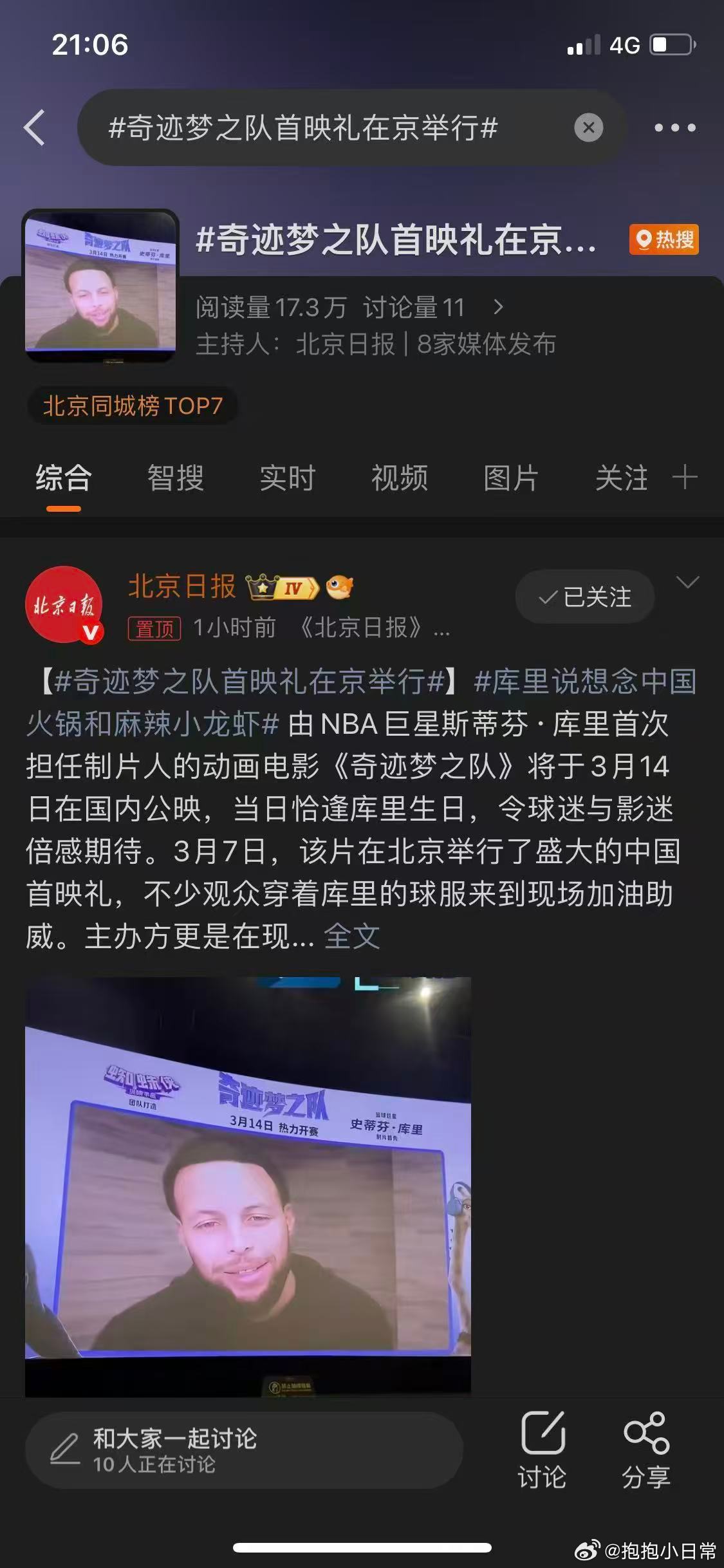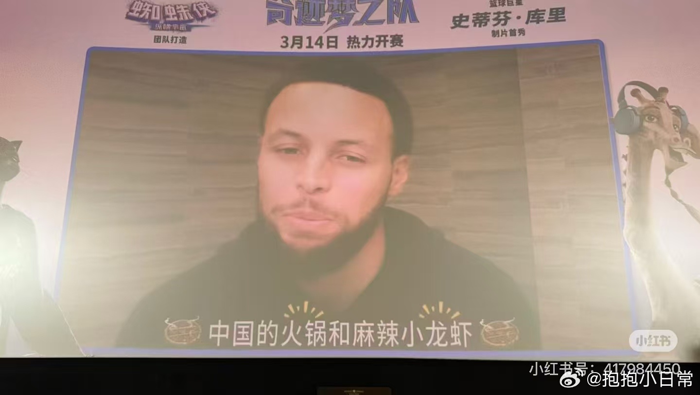 库里说天天想吃中国的火锅小龙虾 动画《奇迹梦之队》3.14上映,动物追梦故事超励志!库里视频问候,天天想吃小龙虾。