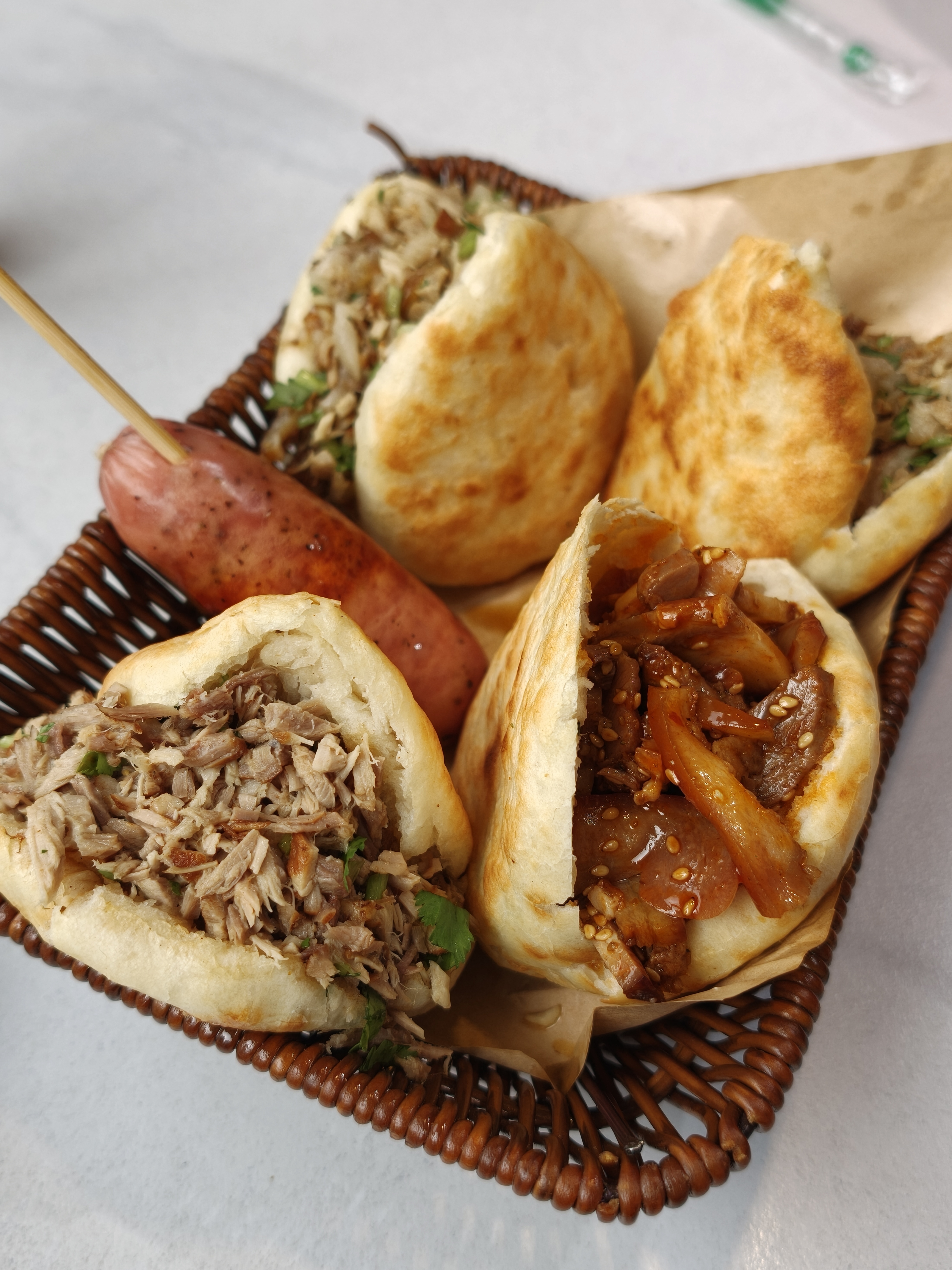 中午排队的人有点多任丘除了驴肉火烧(马肉),大饼卷焖子(其实一般不会这么吃),圈