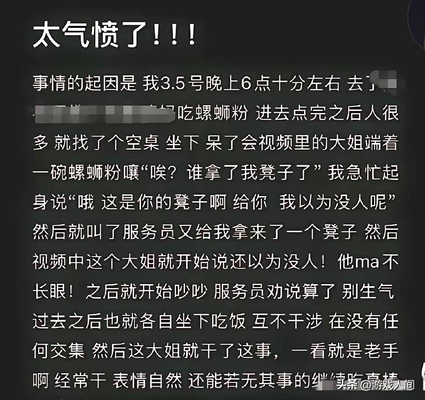 恭喜泼螺蛳粉汤的这位大姐 在这个三八妇女节可能会收到,让她这辈子都不会忘记的三个“礼物”! 1.一件新的羽绒服,当然不是买给她自己的而是赔偿给人家的,一勺汤汁人家可不管你洗不洗的掉,哪怕洗干净了估计人家心里都会有阴影,所以赔偿是不可避免的。 2.亲人朋友的远离,人和人相处最基本的就是看一个人的品质如何,近朱者赤近墨者黑,女子这样小肚鸡肠的行为,谁知道在她身边那天遭到背刺的是不是自己呢? 3.大概率会收到辞退信息,如今舆论在不停的发酵,女子的正脸照也被曝光了,相信公司的同事,领导应该早就看到了,咋们就说就这样的行为,你是领导你还会继续聘用她吗? 所以人啊,千万不要因为一件小事就让自己无路可走,要有格局别把路走窄咯。