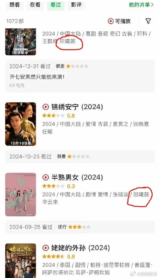 《逐玉》编剧被发现给很多剧豆瓣打一分!《逐玉》编剧曾珍给很多剧打了一分差评,包含《逐玉》男女主张凌赫和田曦薇之前多部作品,看不出是谁的粉丝,只能说对作品和演员要求太严格了,虽然这个账号很快被注销了,但是已经影响到了《逐玉》,《逐玉》的豆瓣打分通道被紧急关闭了。