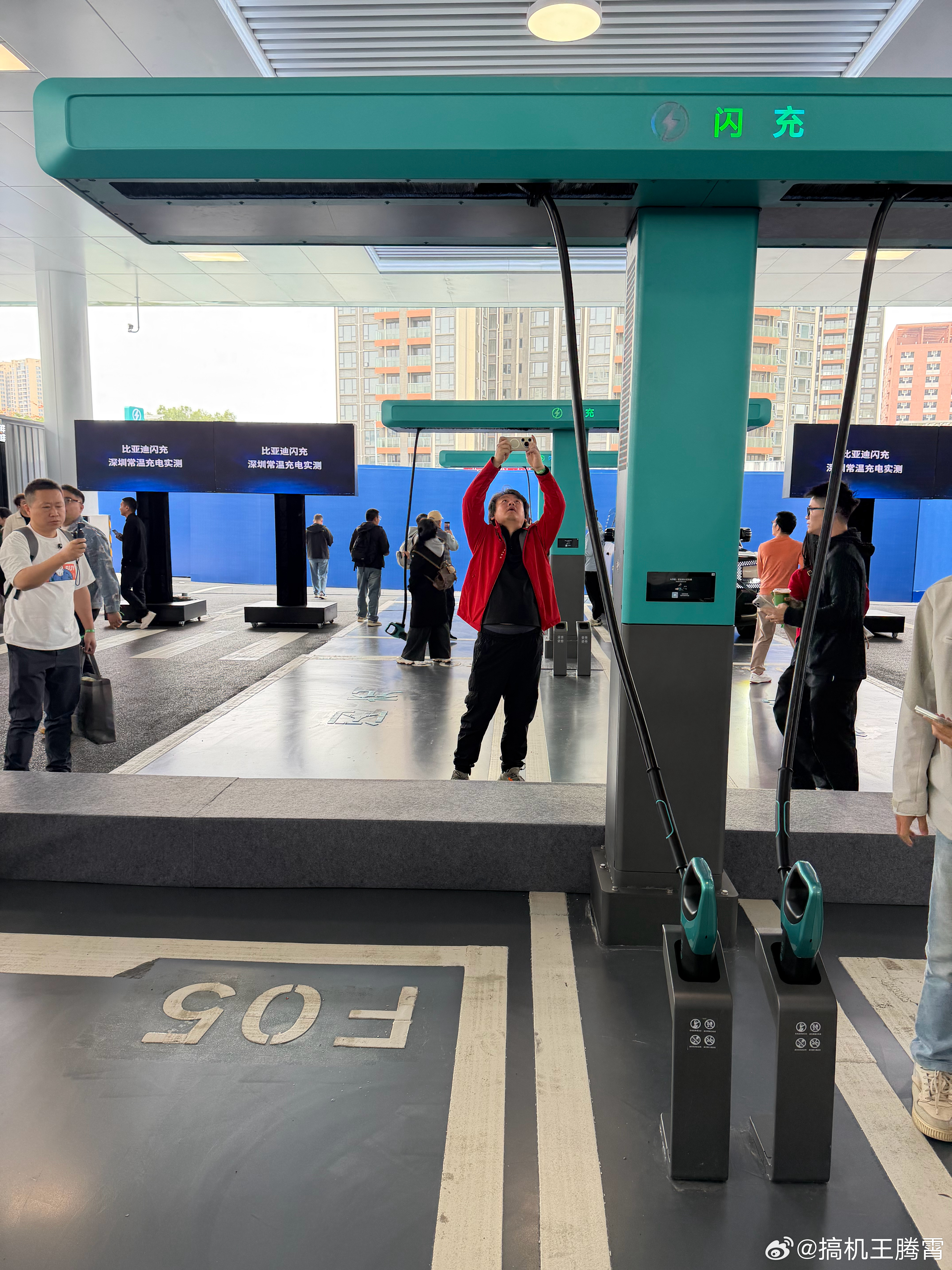 现场体验了下迪子的全新闪充技术,先说感受,确实牛啤。这个T型闪充桩设计不错,无论对男生还是女生来说都挺友好,给车辆充电不费劲,也不用担心充电枪摆放问题,我体验的这个充电站总共有7台桩,每台桩2根枪,也就是说同时可以给14台车充电。