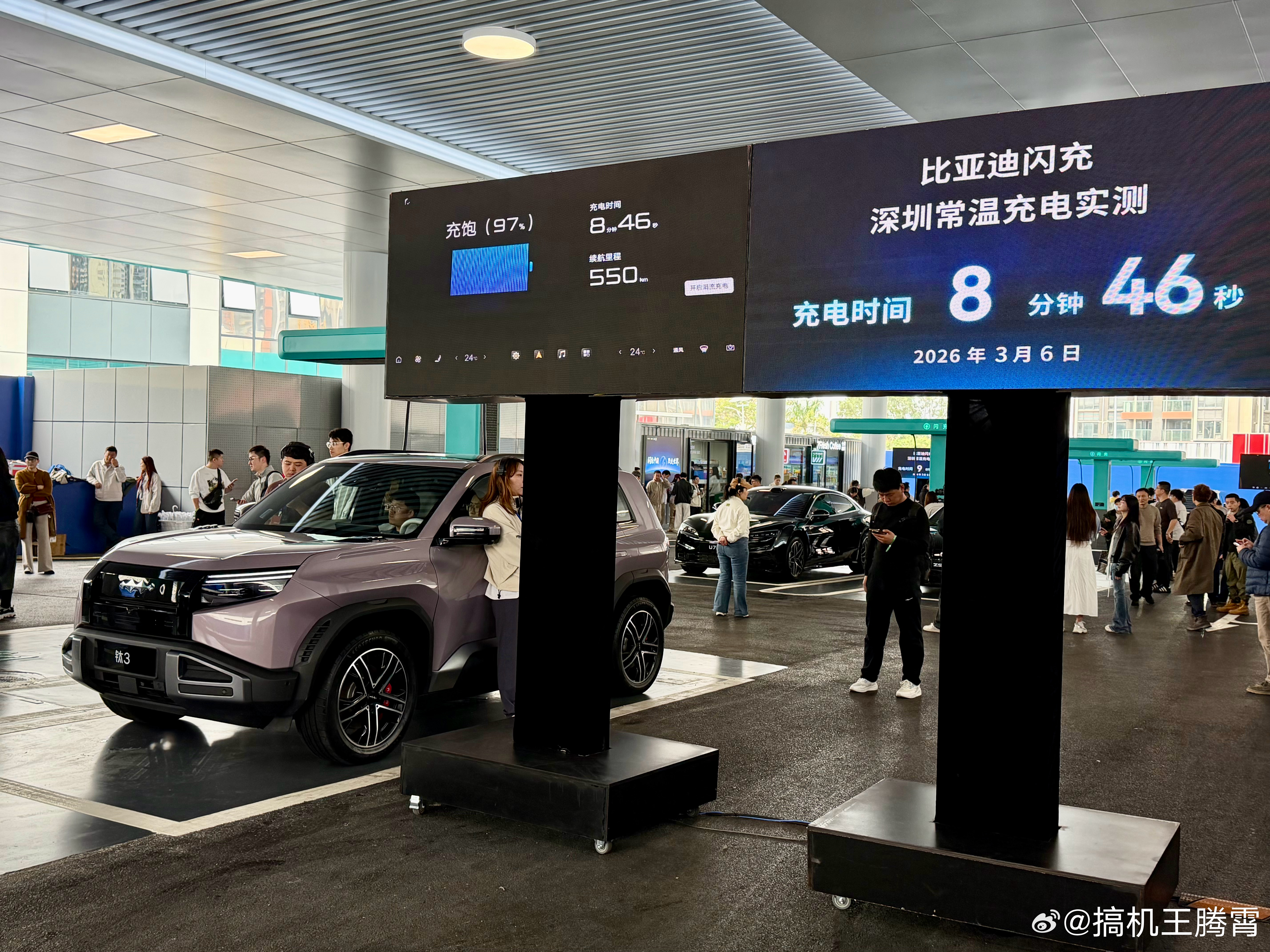 另外就是低温场景下的迪子闪充,现场用的是纯电版大唐来做测试,-30℃低温冻一天一夜,实测3分7秒就能充46%,10分钟就能充到97%(纯电续航778km),这充电速度也相当可观,即便极寒环境下,就比正常环境慢了1分钟,目前就等迪子的闪充桩能尽可能铺开,真到那个时候,用户的续航焦虑应该会越来越小,这速度怎么样