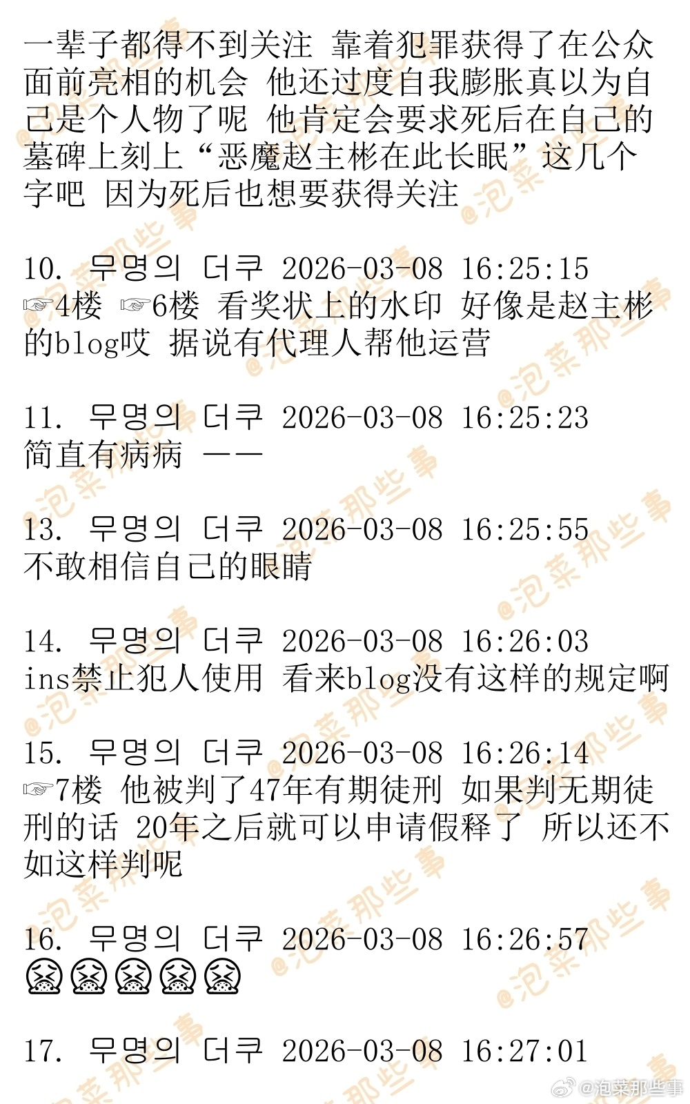 🔥🔥韩网600楼热帖评论翻译🔥🔥N号房主犯赵主彬发帖炫耀教导所内获颁人性