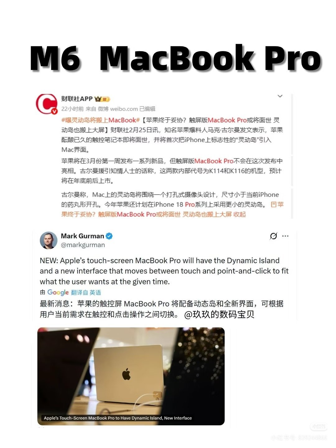 触控屏MacBookPro爆料触控屏加灵动岛加双层OLED屏,这个可以有