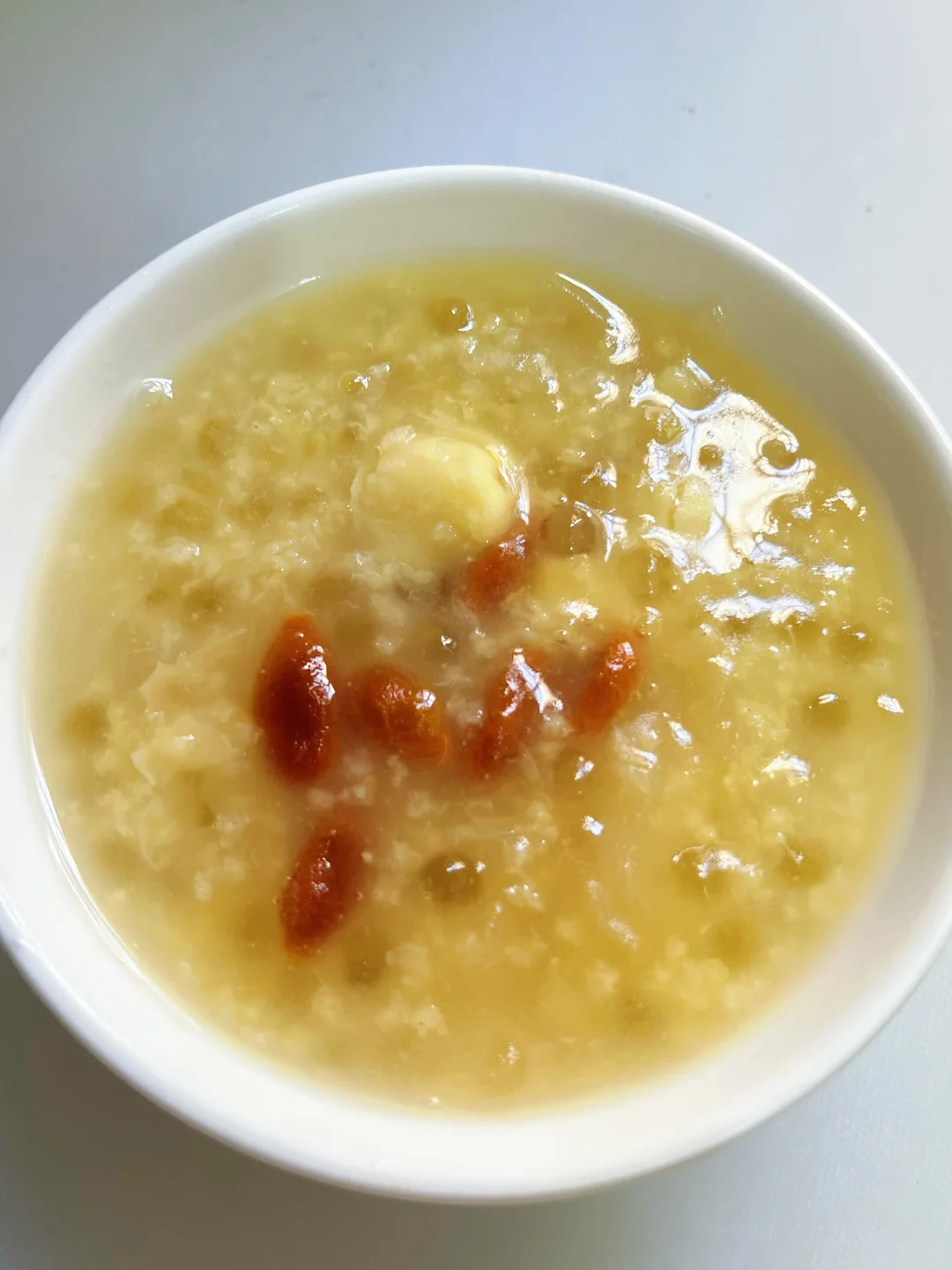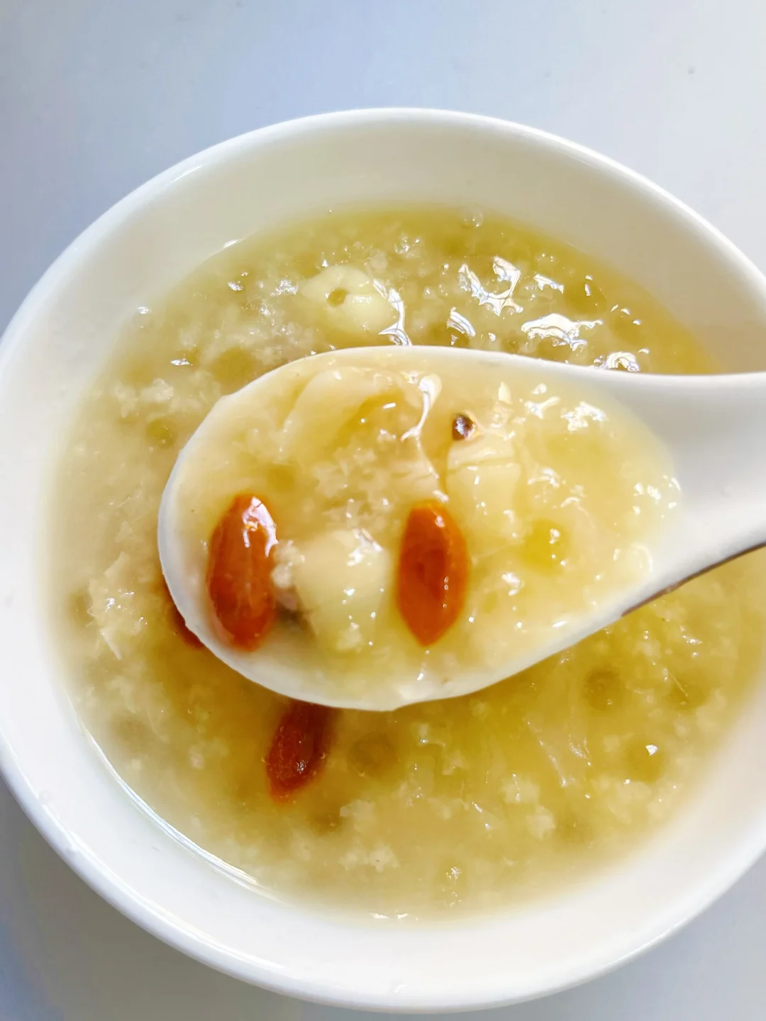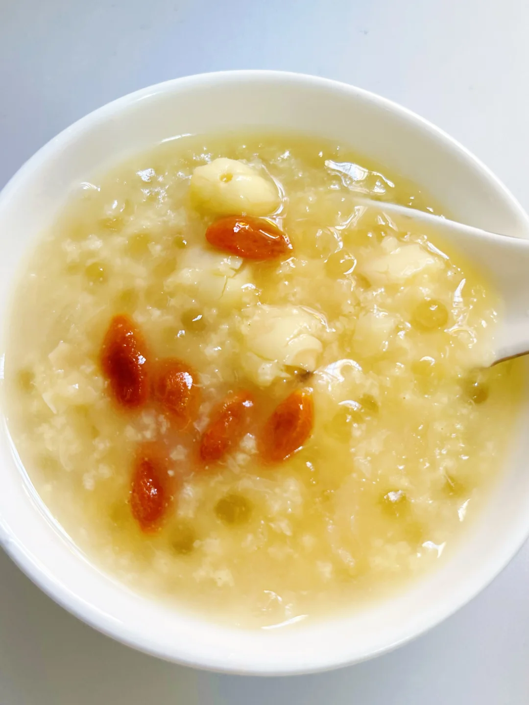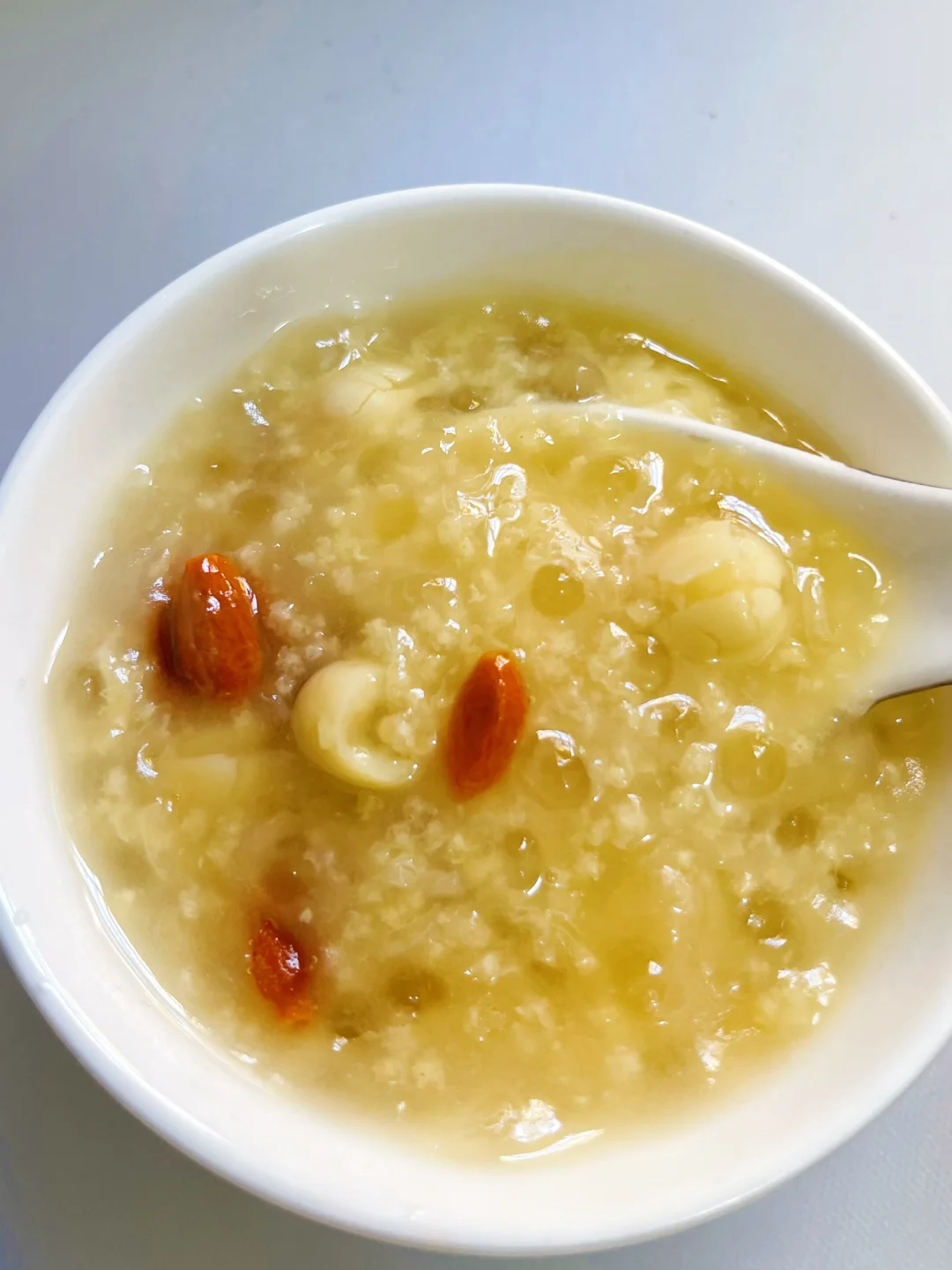 银耳润燥、莲子养心、绿豆清热、小米养胃,西米增加绵密口感,枸杞提色又补气血。喝完嘴巴不干,肠胃暖暖的,熬夜后第二天也能元气满满!