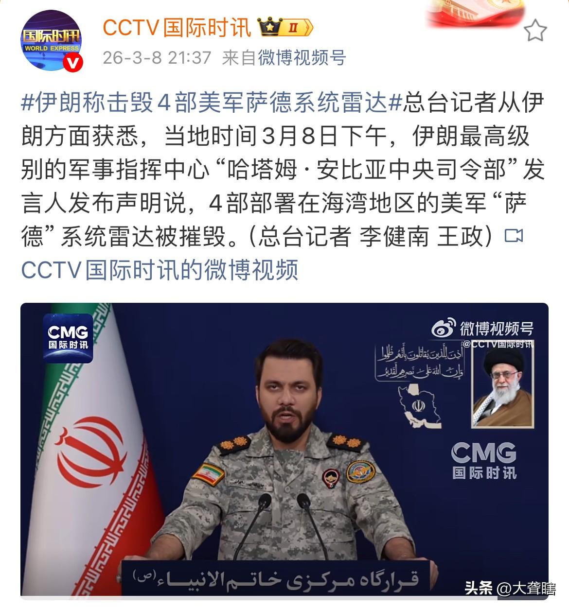 越打越会,伊朗摧毁美军多套「萨德」反导系统! 伊朗最高级别军事指挥中心发言人表示,伊朗军队已经摧毁了美军部署在海湾地区的4部‘’萨德‘’反导系统雷达。 有消息称,美军在中东地区部署了五套该系统,如今四套被摧毁,另有一套也已损毁,如此一来,美军防御体系将出现重大缺口。