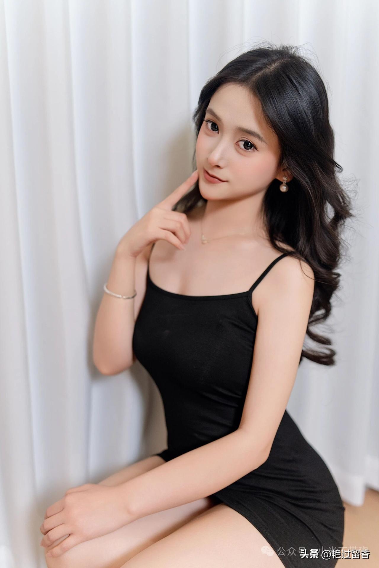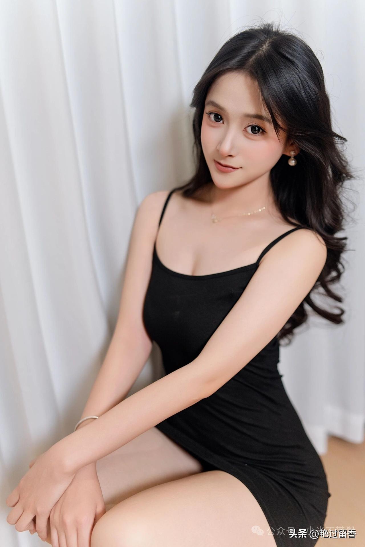 优雅黑裙,坐在舒适的橙色椅子上,尽显时尚魅力。