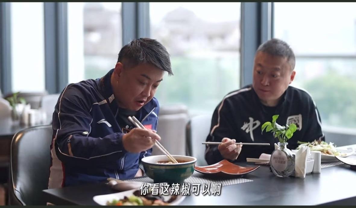 男主、女主两个人这是干啥呢[捂脸]? 王皓指导、马琳指导这是在拍广告吗? 如果真的是在做广告,马琳指导你要拿出笑脸来啊,这也不是赛场,你也没坐在场边,你是在餐桌边吃饭啊[笑哭]。 不过虽然俩人没笑,倒真的挺自然的,来到了重庆,来到了饭馆,就得当个吃货,才不虚此行,有了这辣椒的旺,才有赛场上的旺[笑哭]!
