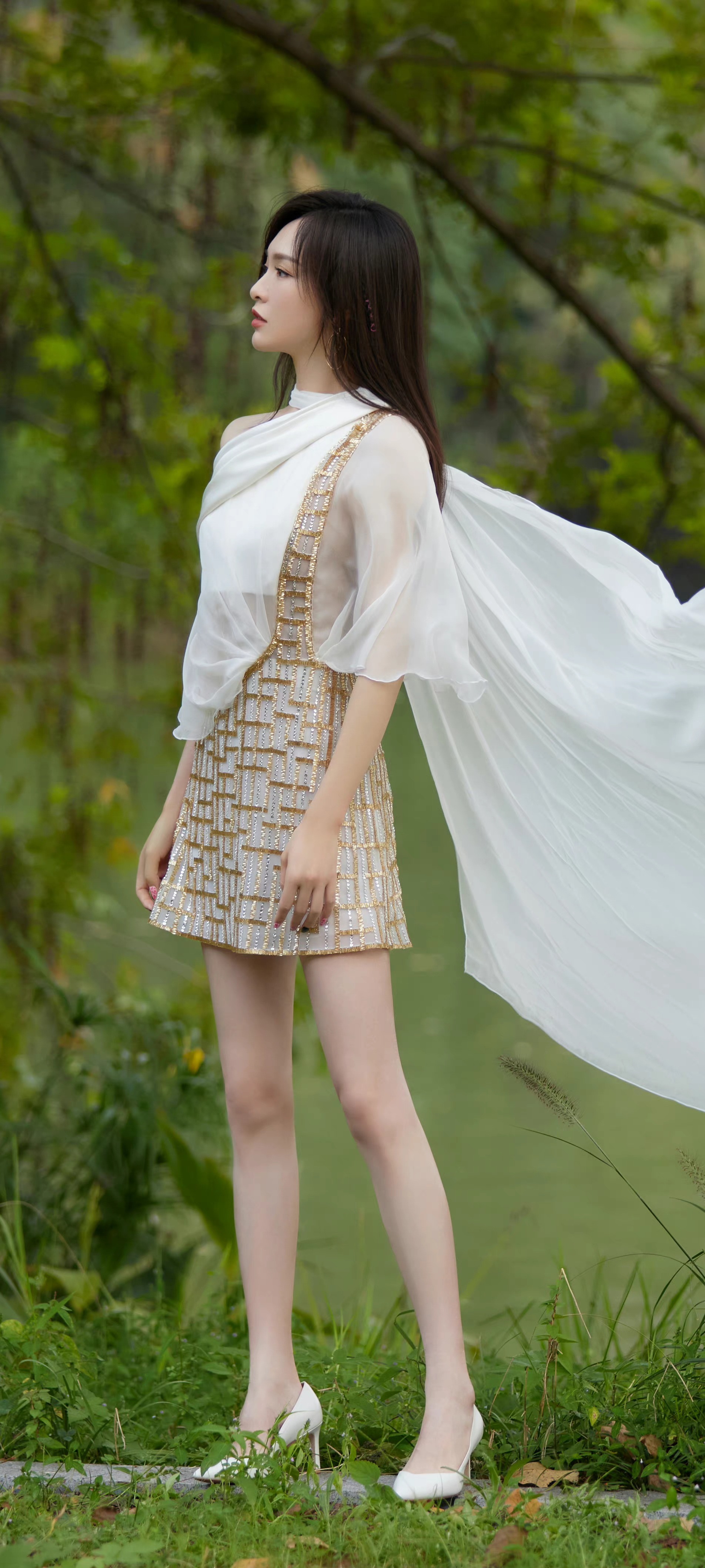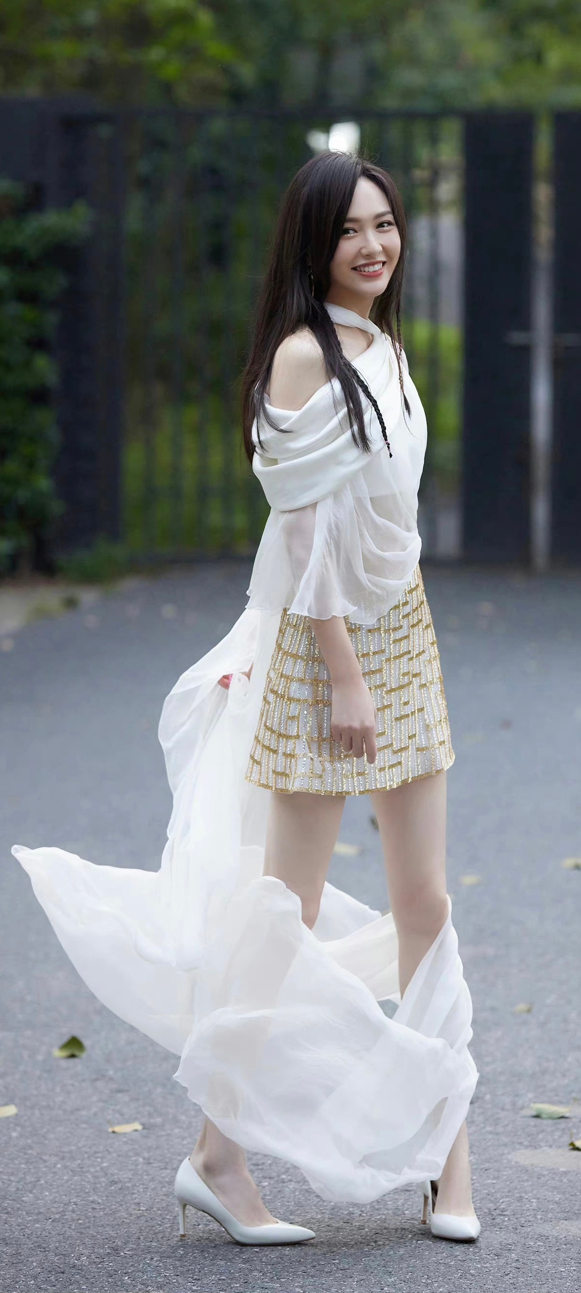 唐嫣裙装穿搭全屏手机壁纸,糖糖这大长腿确实让人羡慕。唐嫣