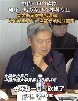 中国传媒大学官宣撤销翻译、摄影等16个本科专业,引爆教育圈。校方直言:人机分工时代到来,传统课堂必须重构,重复性技能交给AI,高校只教核心与创新。 被砍专业直指AI冲击重灾区:翻译被实时工具替代、摄影/设计被AI生成碾压,部分专业同质化强、就业对口率低,与传媒主业错位。中传一边砍旧,一边新增游戏科学、电竞、品牌学,资源向智能传播、数字内容集中,一减一增,看清未来赛道。 这不是简单缩招,是高校专业大洗牌的信号。过去靠单一技能吃饭的专业,正快速失去壁垒;只会教操作、不练思维的培养模式,注定被淘汰。中传带头做“减法”,倒逼所有院校与考生:选专业先看能不能被AI替代。 对考生与家长更直白:铁饭碗专业消失,终身学习成为必须。未来拼的不是机械技能,而是创意、审美、跨域整合、价值判断这些AI难取代的能力。 中传砍专业,是AI时代教育革命第一枪。淘汰落后产能,聚焦核心竞争力,才是大学与个人的生存之道。 你觉得下一个被砍的会是什么专业?AI时代该学什么才不被替代?评论区说。