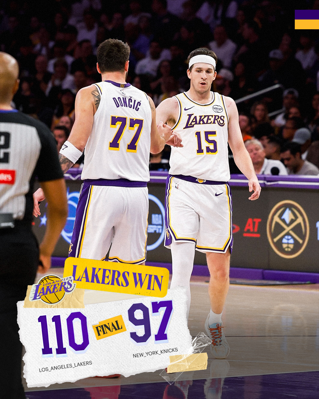 东契奇和里夫斯合砍60分,湖人主场战胜尼克斯。本赛季詹姆斯缺阵,东契奇和小里出战