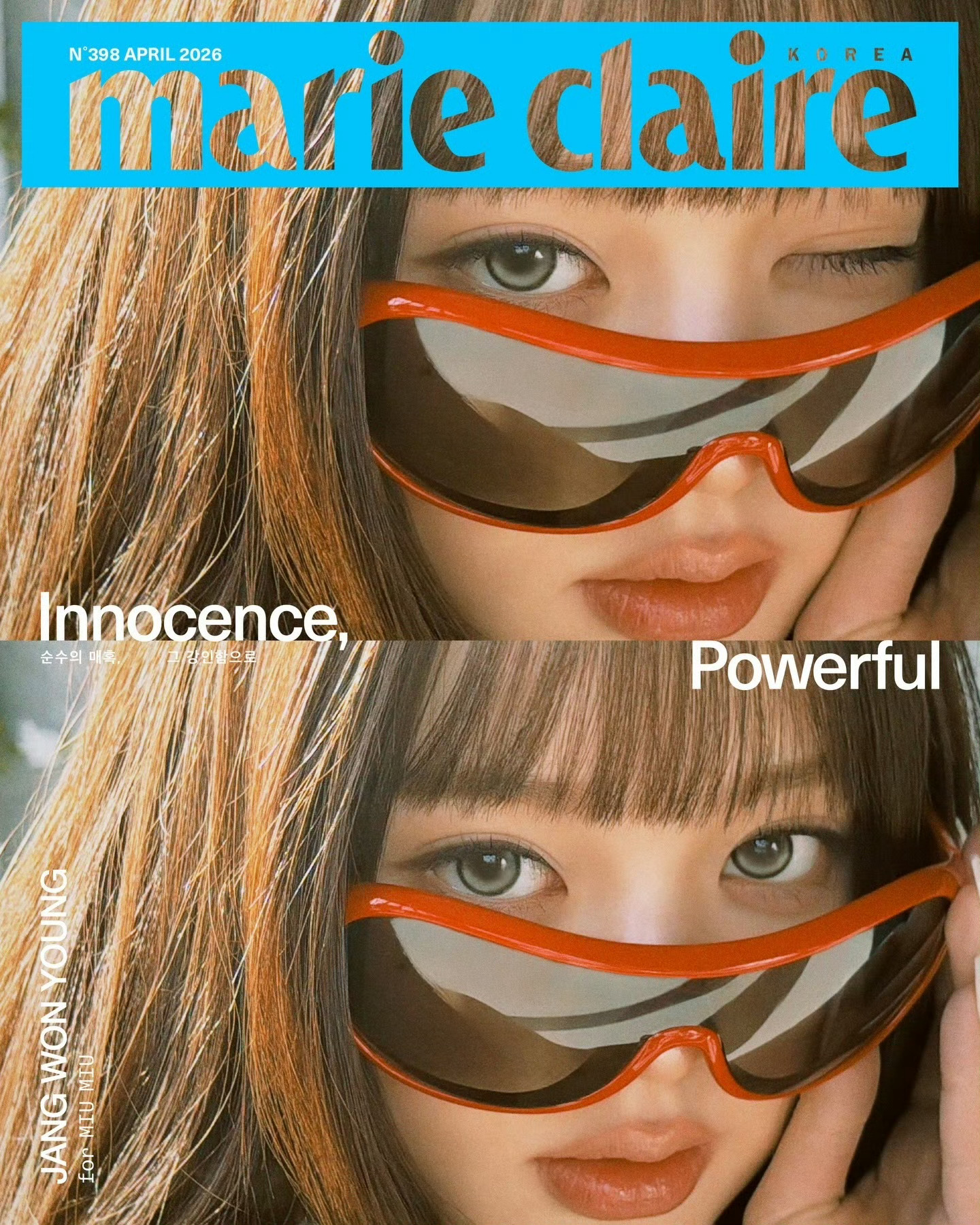 张元英登上韩版《Marie Claire》2026年4月刊封面,来自Miu Miu的支持,正式拿到韩国本土六大女刊全满贯,不仅是同代首位,也是史上最年轻的的一位,太强了,恭喜 ~|摄影:Kim Hee June