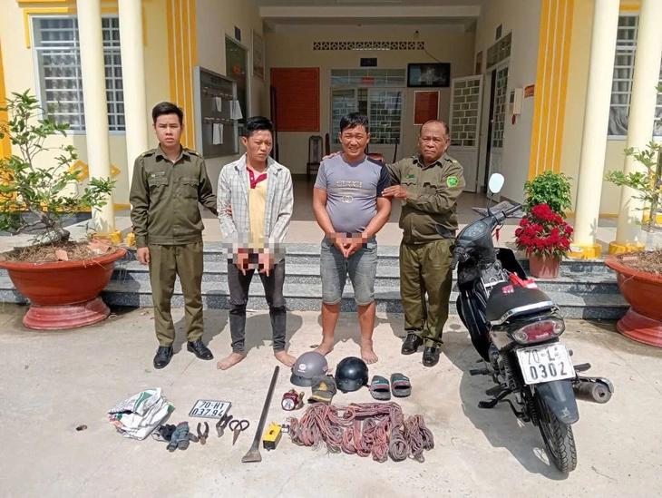 越南基层安全部队抓获的盗割电线者,二人都有吸毒经历