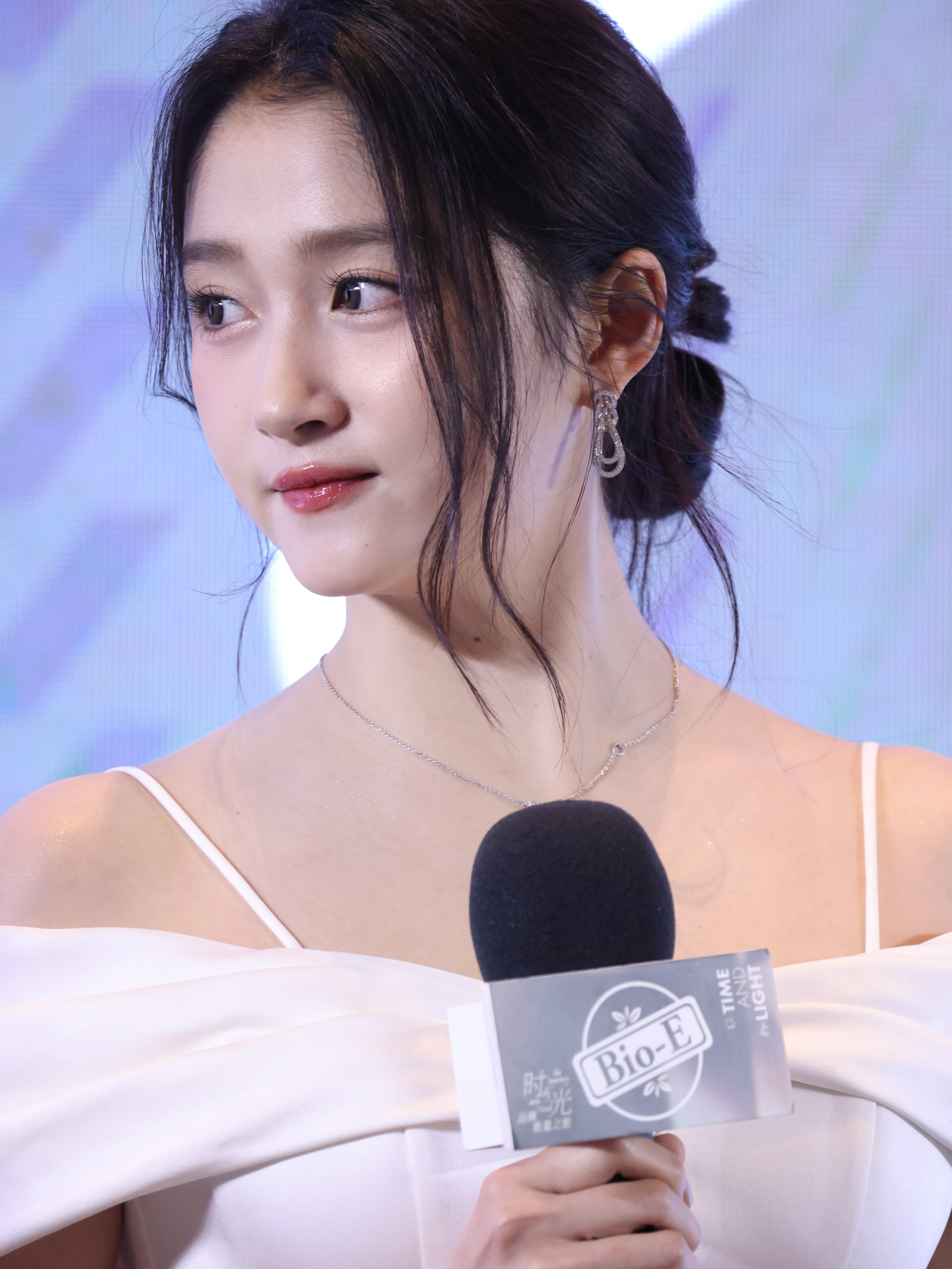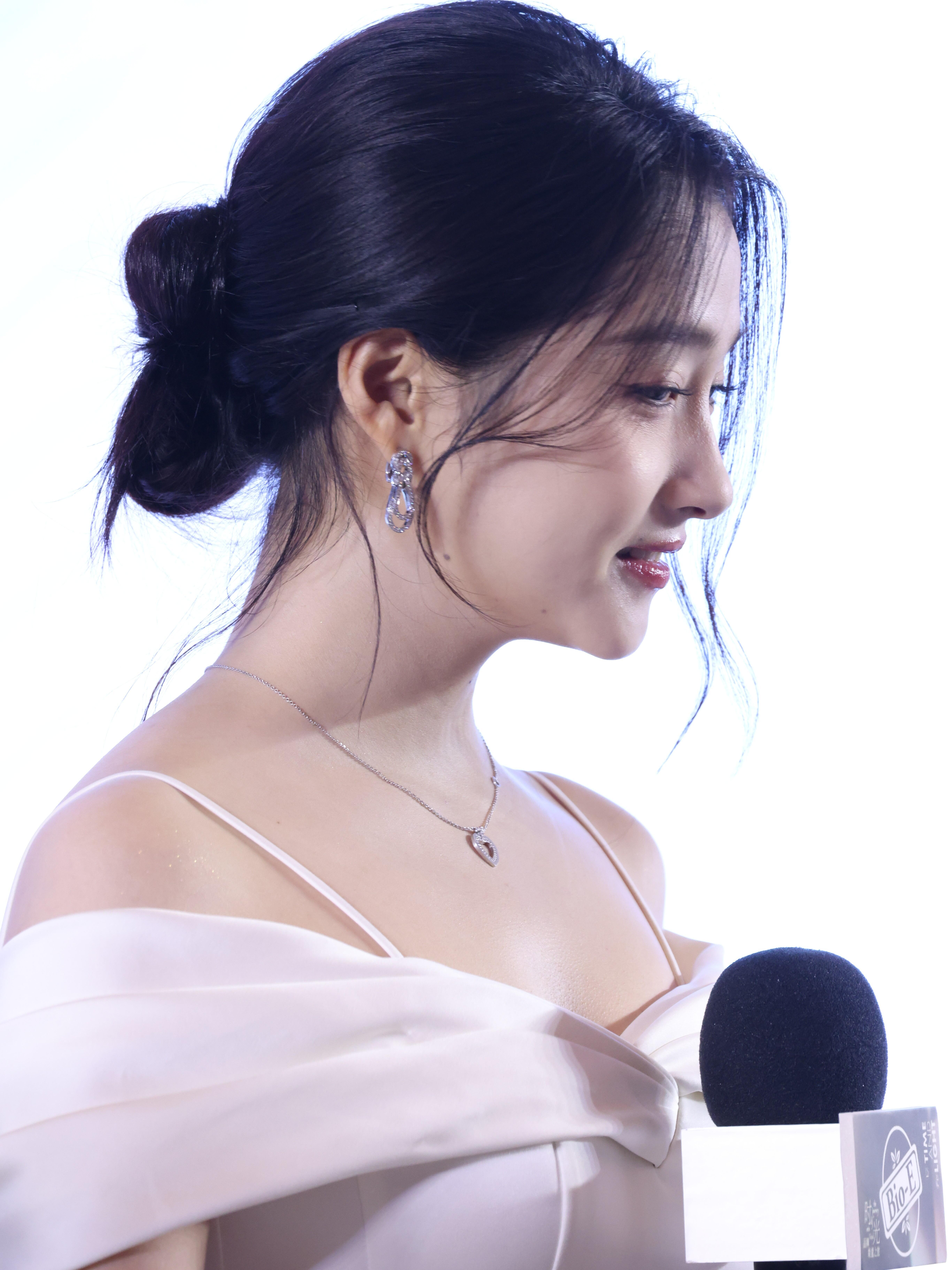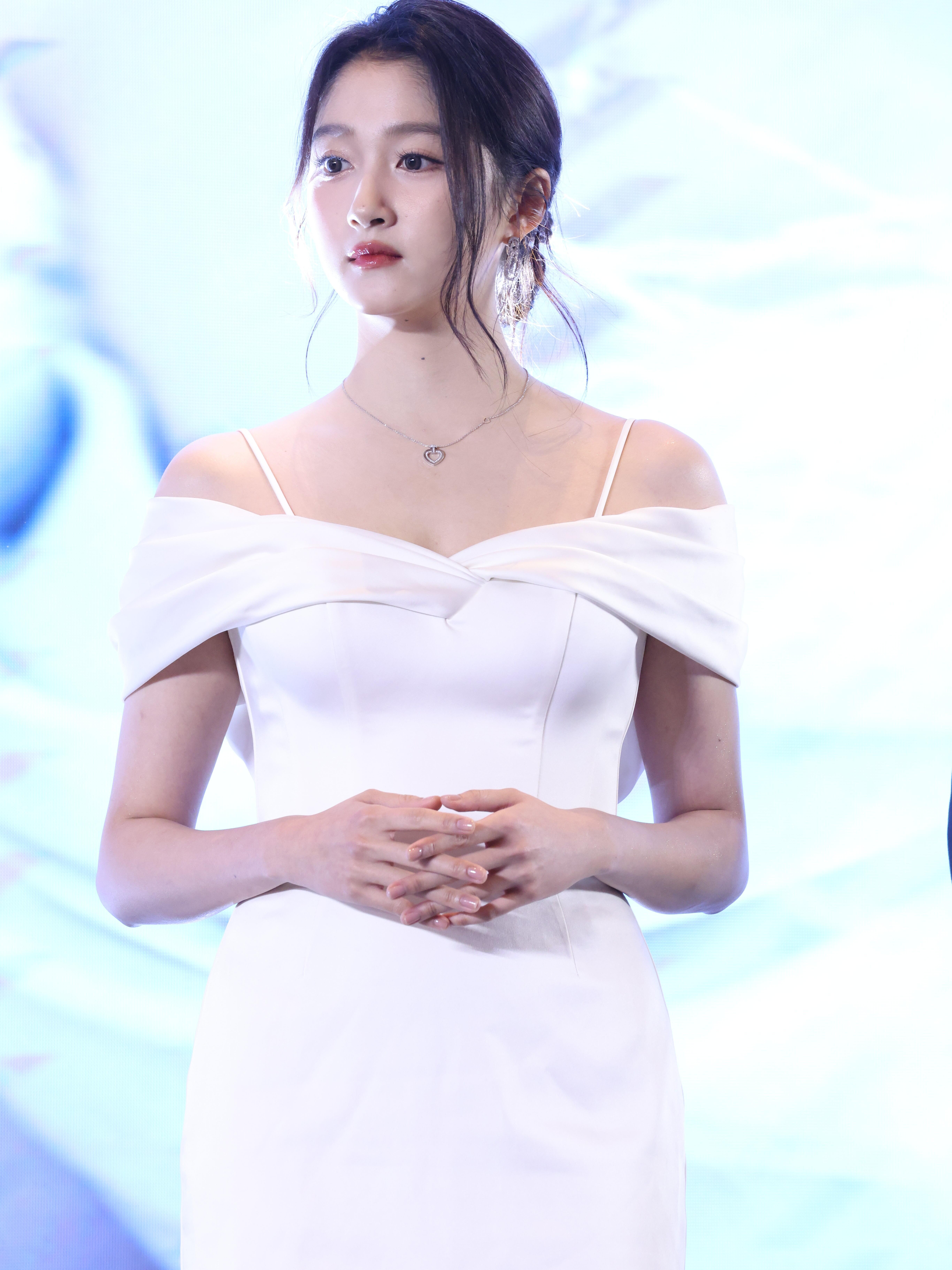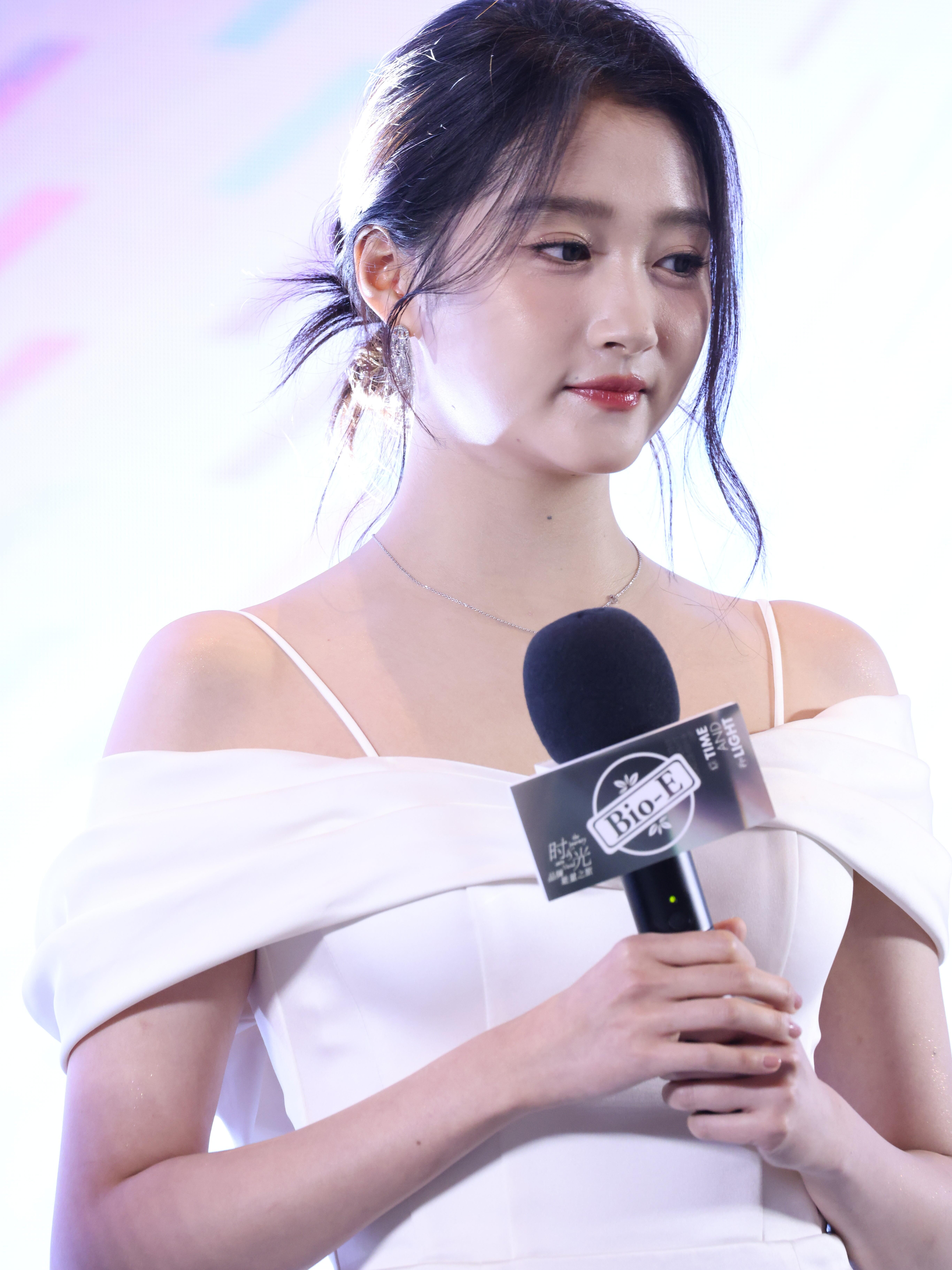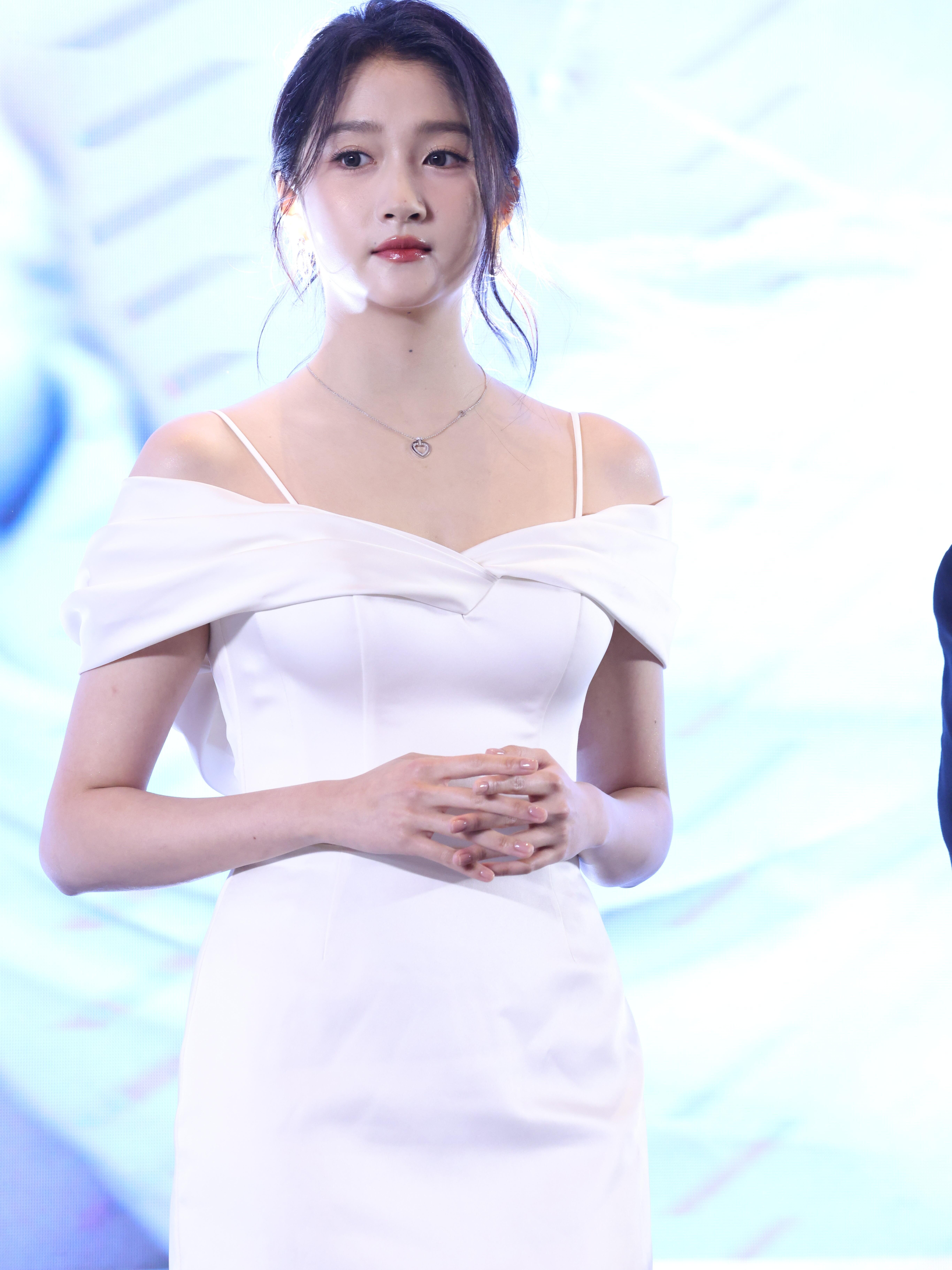 关晓彤活动生图,一字肩吊带裙身材比例惊人
