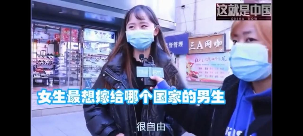 记者街头采访女大学生愿意嫁给哪里人,法国,俄罗斯,美国。 甚至有印度,非洲,唯独没有一个说自己的国家。 她们说法国人浪漫理解女人,他们说俄罗斯战斗民族,肌肉发达满足女人,他们说美国聪明睿智关怀女人。 他们说欧洲人白,眼睛好看,还有说韩国男人体贴多金。 视频不截了,因为我已经患上多动症[流泪]!