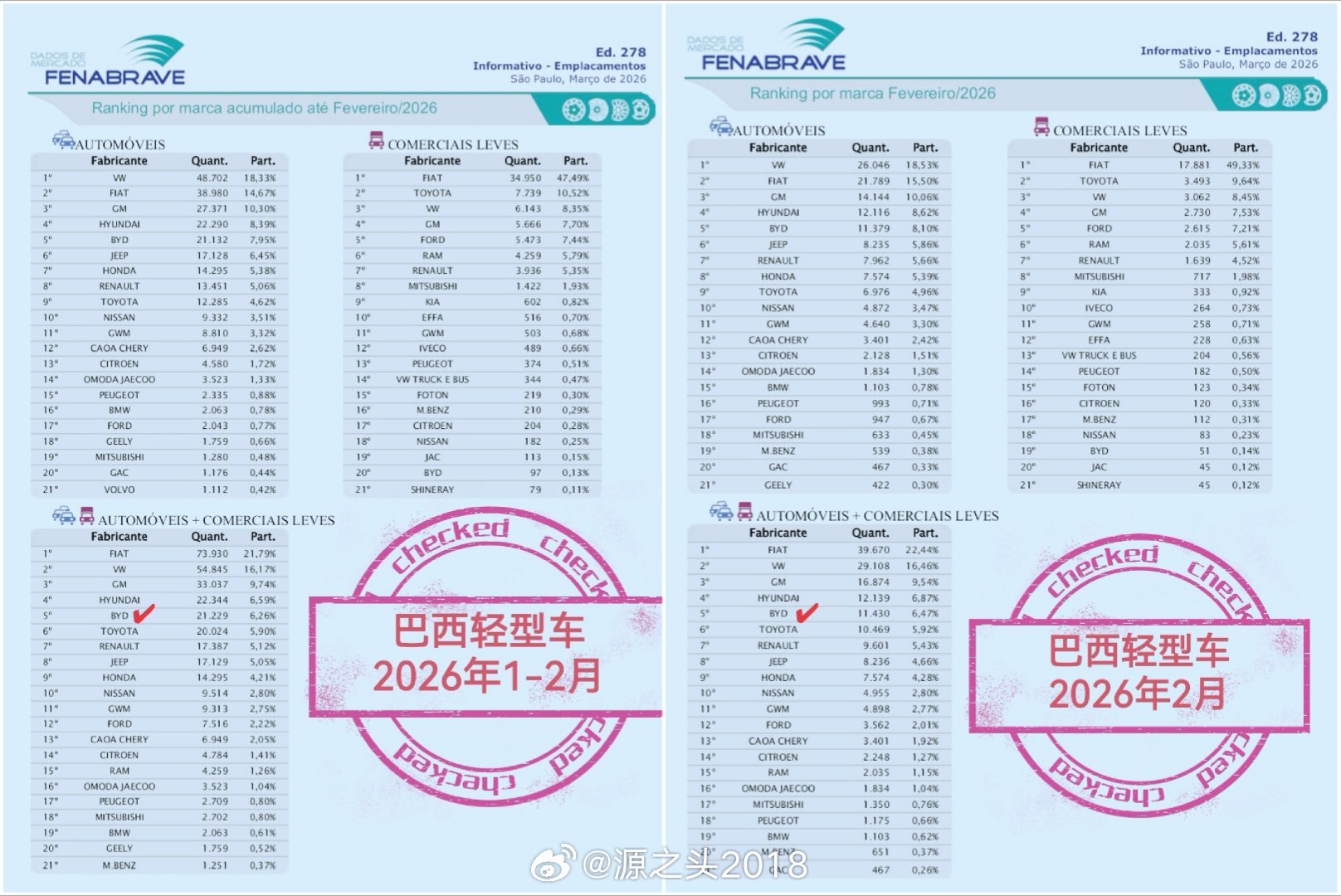 2月,比亚迪巴西销量11430台(不包括腾势),同比去年同期7030台增长62.6%;1-2月销量21229台,同比去年同期13603台增长56% !
