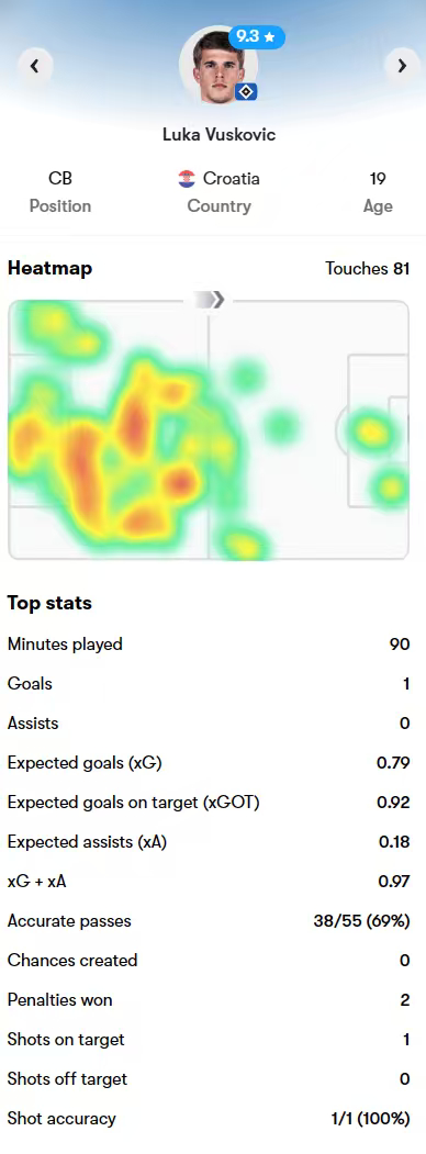 德甲:汉堡 2-1 沃尔夫斯堡,小武什打入一球。
