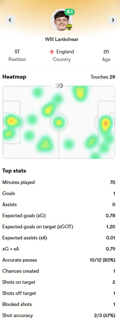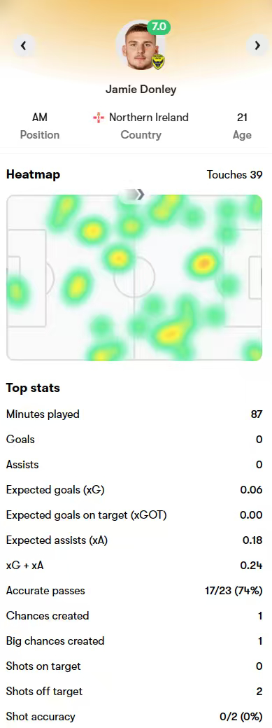 英冠:牛津联 3-1 普雷斯顿,兰克希尔打入一球,东利、德维恩打满全场。