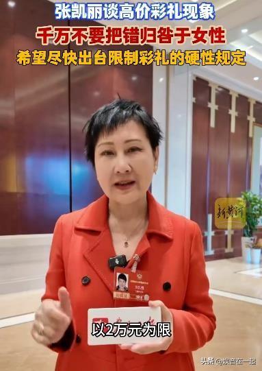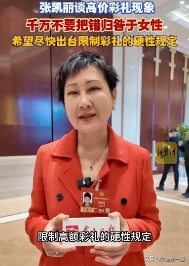 天价彩礼真不该全怪女性。这彩礼屡禁不止原因多了去了,不能把锅都甩给女性。很多时候,可能是家庭观念、社会风气等因素在作祟。 彩礼的数字并不能代表婚姻的幸福,幸福还得靠夫妻二人共同努力创造。现在很多年轻人因为天价彩礼被挡在婚姻门外,实在可惜。 张凯丽建议出台硬性规定限制彩礼数额,这是个好办法。要是真能实施,说不定能让更多有情人顺利走进婚姻殿堂,让大家不再为彩礼发愁。大家对于凯丽姐的提议有什么看法呢?