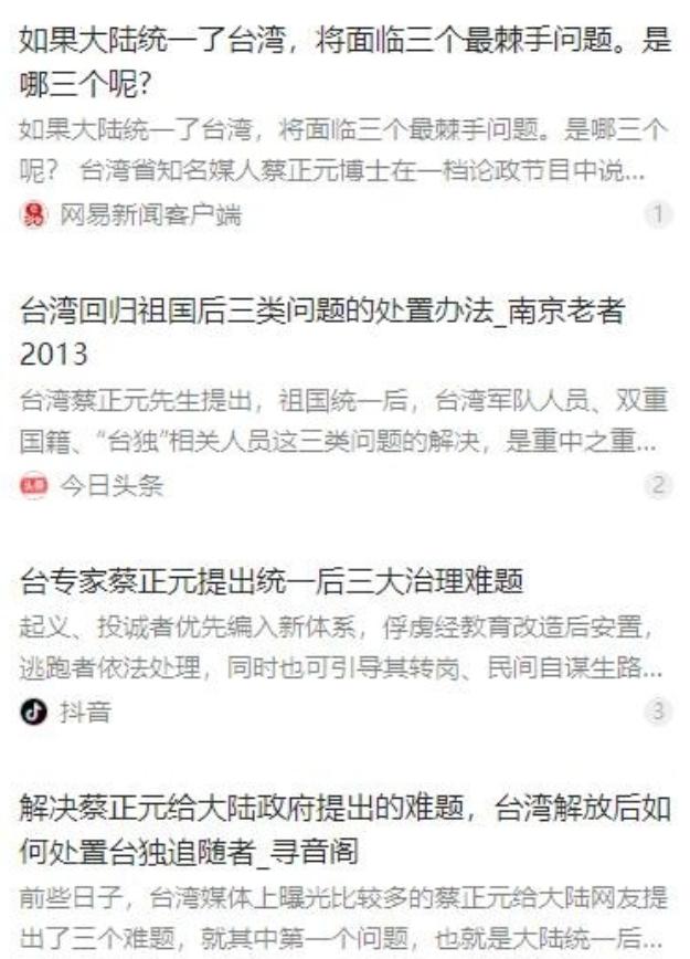 台湾省的蔡正元抛出三个问题,问中央如果在统一后就有这三个问题不好办。两岸统一的话题总是让人想得多,蔡正元这个人抛出的三个问题,直接戳中了实际操作的痛点。 麻烦看官老爷们右上角点击一下“关注”,既方便您进行讨论和分享,又能给您带来不一样的参与感,感谢您的支持! 两岸统一的话题,这些年一直都是全网热议的焦点,无论台岛内还是大陆这边,都在频繁讨论相关话题,而台湾省的蔡正元近期公开抛出三个问题,聚焦统一后实际难题,直言这些问题需要妥善处理。 蔡正元首先抛出的第一个问题,是统一后台湾地区的现有制度如何保留,普通民众的生活方式会不会被改变,毕竟两岸长期分隔,在生活习惯、社会制度上存在一定差异。 他第二个问题直击核心,询问统一后台湾地区的经济发展如何保障,尤其是台湾的支柱产业,会不会受到冲击,台胞的就业、收入等切身利益,又能得到怎样的有效保障。 这第三个问题则关乎台岛内的相关人员安置,蔡正元直言,统一后台岛内的公职人员、军警人员等,该如何合理安置,会不会出现失业、安置不当等问题,这也是很多台胞关心的点。 其实熟悉蔡正元的人都清楚,他向来立场明确,始终坚持一个中国原则,反对台独分裂,此次抛出这三个问题,并非故意刁难,而是替广大台胞说出了心中的担忧和困惑。 很多人不知道,蔡正元曾多次在公开场合发声,力挺两岸统一,驳斥台独分子的荒谬言论,还曾呼吁台胞多来大陆看看,亲身感受大陆的发展,打破两岸之间的认知隔阂。 蔡正元抛出的这三个问题,看似尖锐,实则都是两岸统一过程中需要直面的实际问题,也从侧面反映出,两岸统一从来不是一句口号,而是需要兼顾各方利益的细致工程。 事实上,中央早就针对这些问题给出了明确方向,“一国两制”的方针就是最好的答案,这一方针最早就是为解决台湾问题提出,还在港澳地区得到了成功实践,极具参考意义。 根据《反分裂国家法》的相关规定,国家和平统一后,台湾可以实行不同于大陆的制度,高度自治,台胞的社会制度和生活方式会得到充分尊重,私人财产、合法权益也会得到充分保障。 至于经济发展和人员安置问题,中央也早已给出具体规划,大陆的“31条”“26条”等惠台措施,已经让无数台胞受益,统一后还会推出更多政策,助力台湾经济发展、妥善安置相关人员。 这些年,两岸融合发展的成果有目共睹,台胞可以在大陆参加职业资格考试、办理居住证,还能享受和大陆同胞同等的教育、医疗等福利,台胞运动员还可以内援身份参与大陆多项职业联赛,彰显着中央对台胞的关怀。 反观台岛内的台独分子,从不关心统一后的实际问题,只会一味炒作台独言论,勾结外部势力,破坏两岸关系,最终只会损害台胞的切身利益,阻碍两岸统一的进程。 其实蔡正元抛出的三个问题,也给大家提了个醒,两岸统一不仅要坚定立场,更要注重实际操作,兼顾台胞的合理诉求,让台胞真正感受到统一带来的好处。 两岸本同胞同根同源、同文同种,有着共同的历史记忆和民族情怀,统一从来不是谁吞并谁,而是两岸同胞携手同心,共同守护家园,实现民族复兴的伟大梦想。 愿两岸同胞都能放下隔阂、增进互信,多沟通、多了解,共同期盼统一、推动统一,相信在两岸同胞的共同努力下,我们一定能实现祖国完全统一,共创美好未来。 我们始终坚信,祖国完全统一一定能够实现,这是全体中华儿女的共同愿望,也是民族复兴的题中之义,任何力量都无法阻挡这一历史潮流,两岸同胞终将共享统一的荣光。 信源:1. 中国新闻网《依法坚决反对和遏制“台独”分裂、实现祖国完全统一》(2025年12月20日);2. 观察者网《两岸圆桌派|高志凯、蔡正元:特朗普拿到低层次优惠,中国取得高层次战略成功》(2025年11月5日);3. 新华网《“一国两制”为台湾问题解决提供根本遵循》(2025年10月1日);4. 央视新闻《惠台政策持续落地,台胞共享发展机遇》(2026年2月15日);5. 中国政府网《台办发展改革委关于印发〈关于进一步促进两岸经济文化交流合作的若干措施〉的通知》(2025年10月20日);6. 中国台湾网《逐条解读“26条措施”》(2026年1月3日)