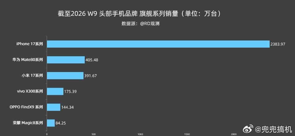 华为Mate80销量国产第一根据公开信息,截至2026年9周,华为Mate 80系列累计销量约405.48万台,在国产旗舰手机中暂居销量第一。