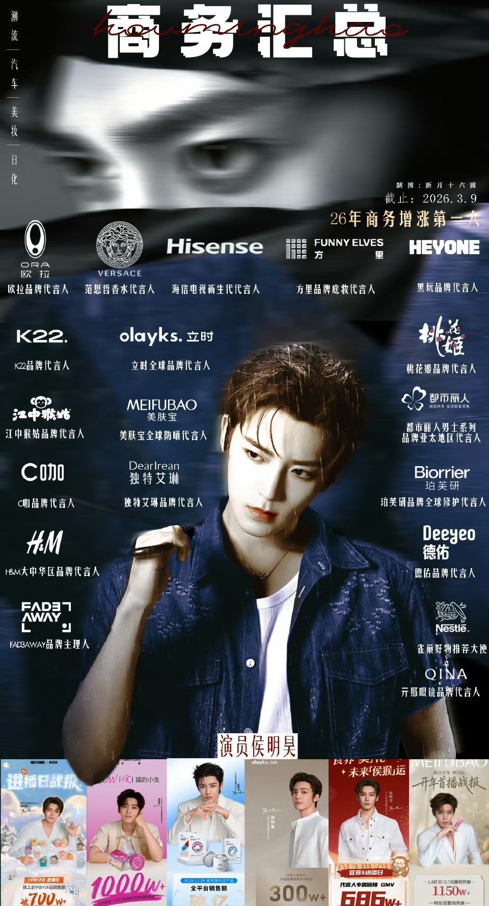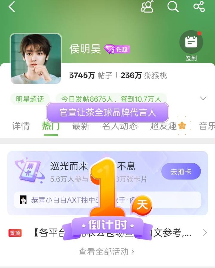 侯明昊回签让茶全球代言人,商业价值真的好高,今年新增商务量也是排名第一
