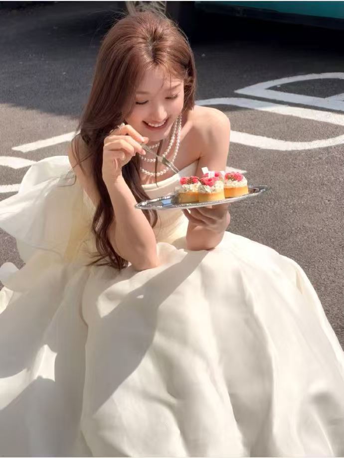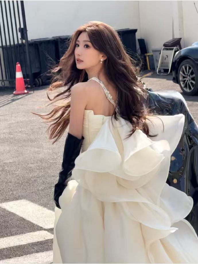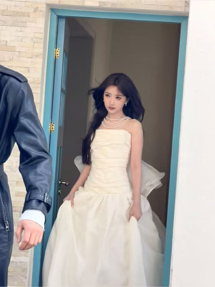 毛晓彤抹胸白裙 毛晓彤身着抹胸白裙,宛如一朵盛开的白莲!裙摆的褶皱增添层次感,衬得她更加清新脱俗,美不胜收!