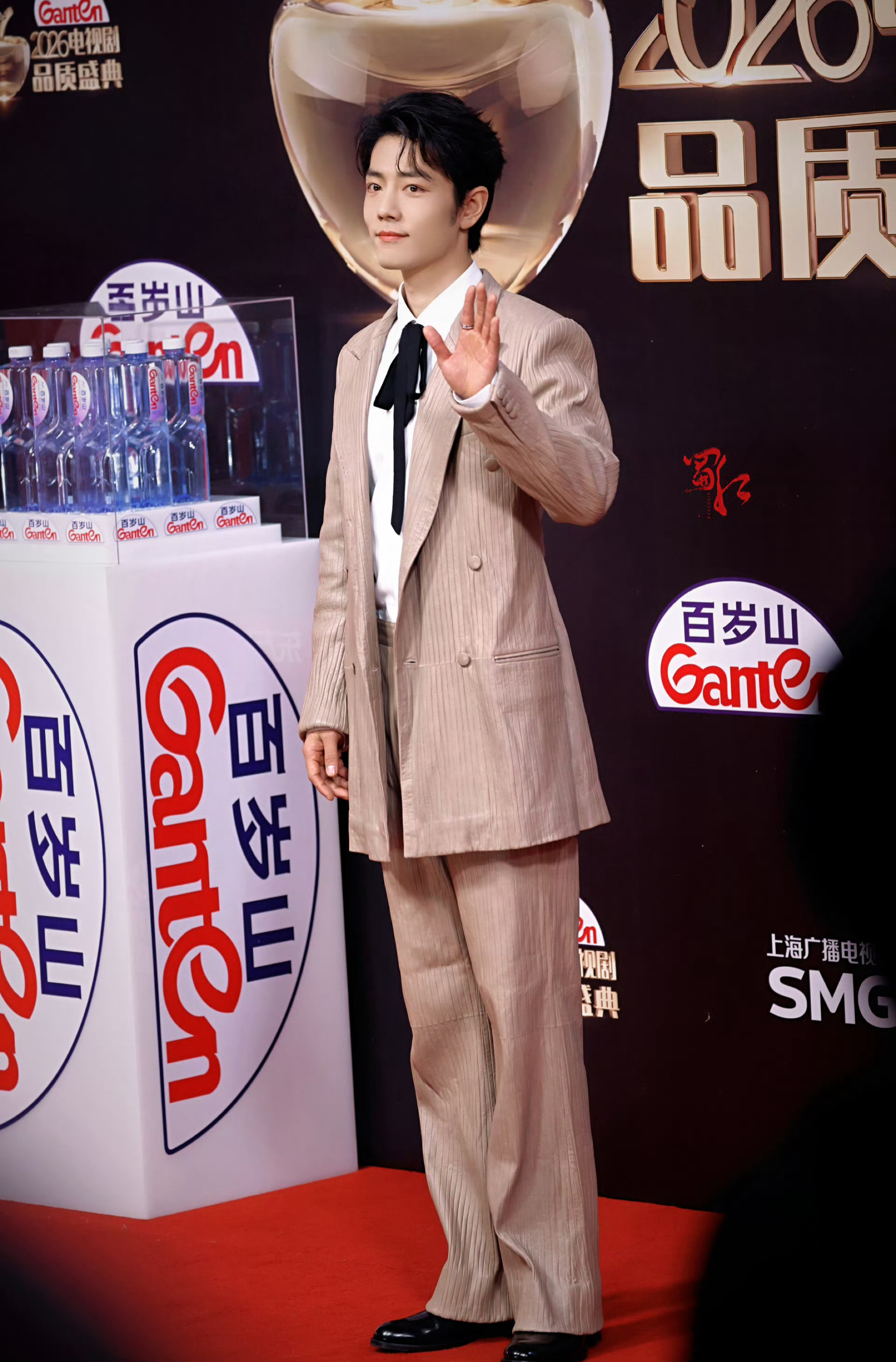 肖战这套白色披风西装造型真的鲨疯了!奶白色西装搭配鎏金镶边披风,袖口的碎钻点缀,