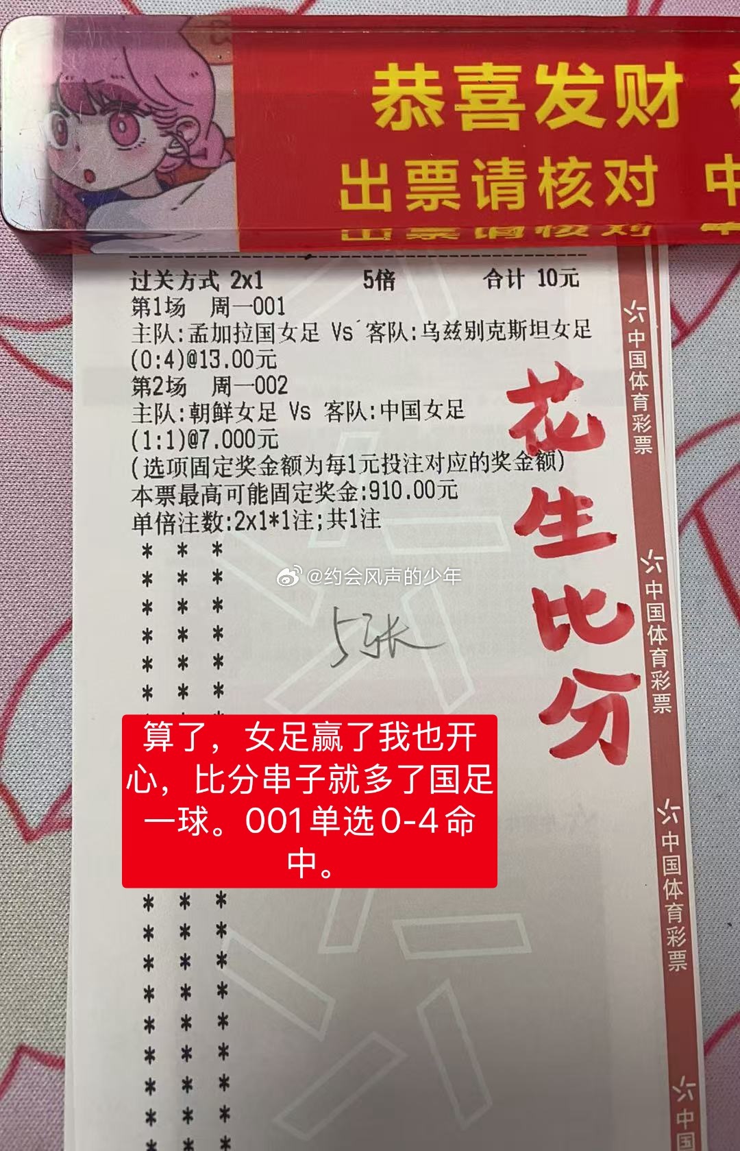 早场女足亚洲杯001单选的比分04收米,002有点可惜,不过0102让负的推荐也收米了,一个很美妙的早场。