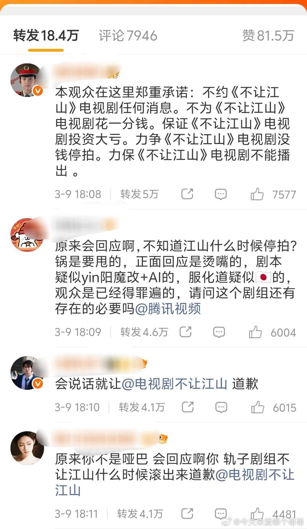 腾讯转发区都是不让江山,羊毛老师真的很有毅力,维权这么多天没有得到回应也没放弃