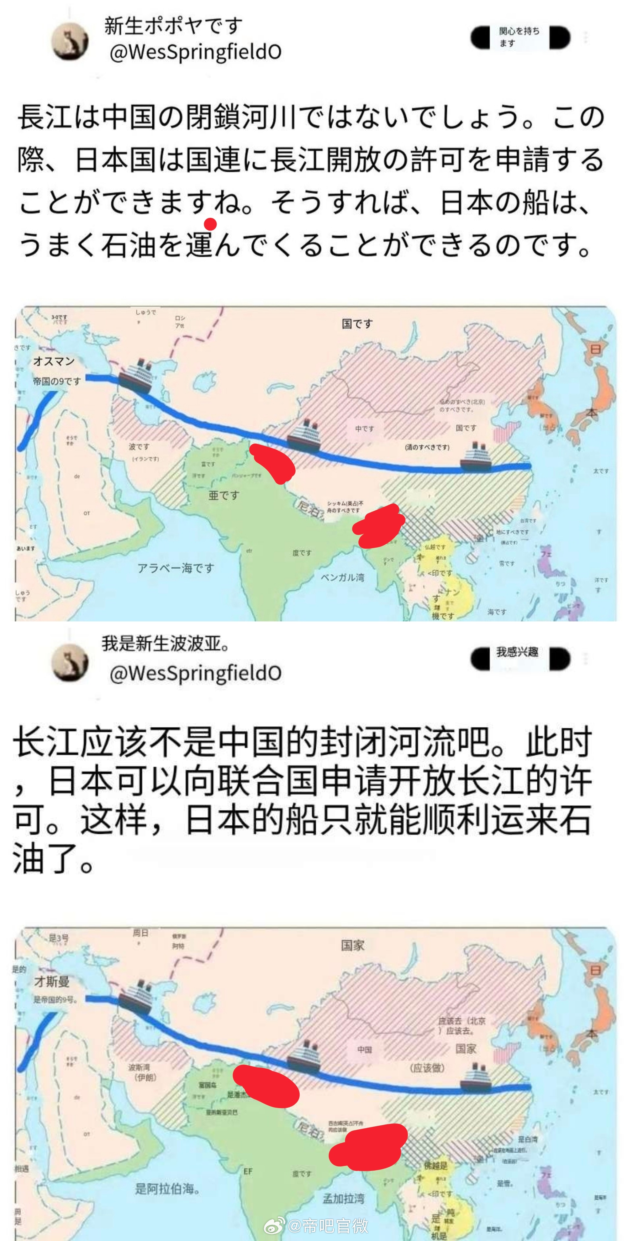 日本人说让中国向开放日本船只通行长江的权限,然后帮中国打通从上海直达沙特的长江航线,并表示“这样,日本的船只就能顺利运来石油了。”⭐不愧是幽默老🐌,可以用图二来形容这种人了(用的地图还是二战时期的)日本部署远程导弹