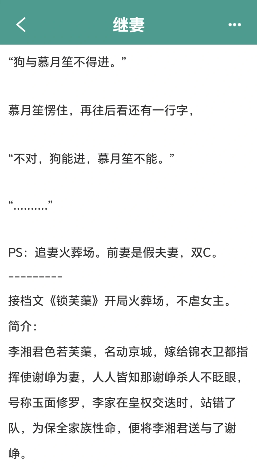 《继妻》完结古言太上头了