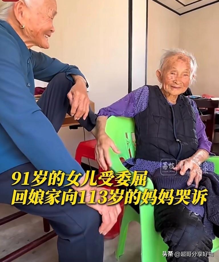 一段91岁女儿受委屈,向113岁妈妈撒娇哭诉的视频,瞬间戳中无数人内心最柔软的地方。没有惊天动地的剧情,只是最朴素的亲情,却胜过世间所有治愈。 视频里,白发苍苍的女儿像个孩子一样,拉着母亲的手委屈诉说,而113岁的妈妈静静听着、轻轻回应。在妈妈眼里,无论女儿活到九十岁还是一百岁,永远都是需要疼爱的孩子。岁月在她们脸上刻下皱纹,却从未冲淡这份血脉相连的温情。 很多人看完瞬间破防。我们总以为长大就该坚强,老了就该懂事,可在母亲面前,所有人都有资格卸下伪装、展露脆弱。妈妈在,人生尚有来处;妈妈听,委屈就有归宿。这不是幼稚,而是最珍贵的幸福。 百岁母女相守的画面,也让我们重新理解陪伴的意义。真正的孝顺,不只是衣食无忧,更是愿意耐心倾听、温柔相待,让长辈永远拥有被在乎、被呵护的感觉。 愿天下所有父母安康长寿,愿每一个儿女,都能在父母身边,永远保有这份可以撒娇、可以哭诉、可以安心做孩子的权利。人间万般美好,不及一声“妈妈,我受委屈了”。
