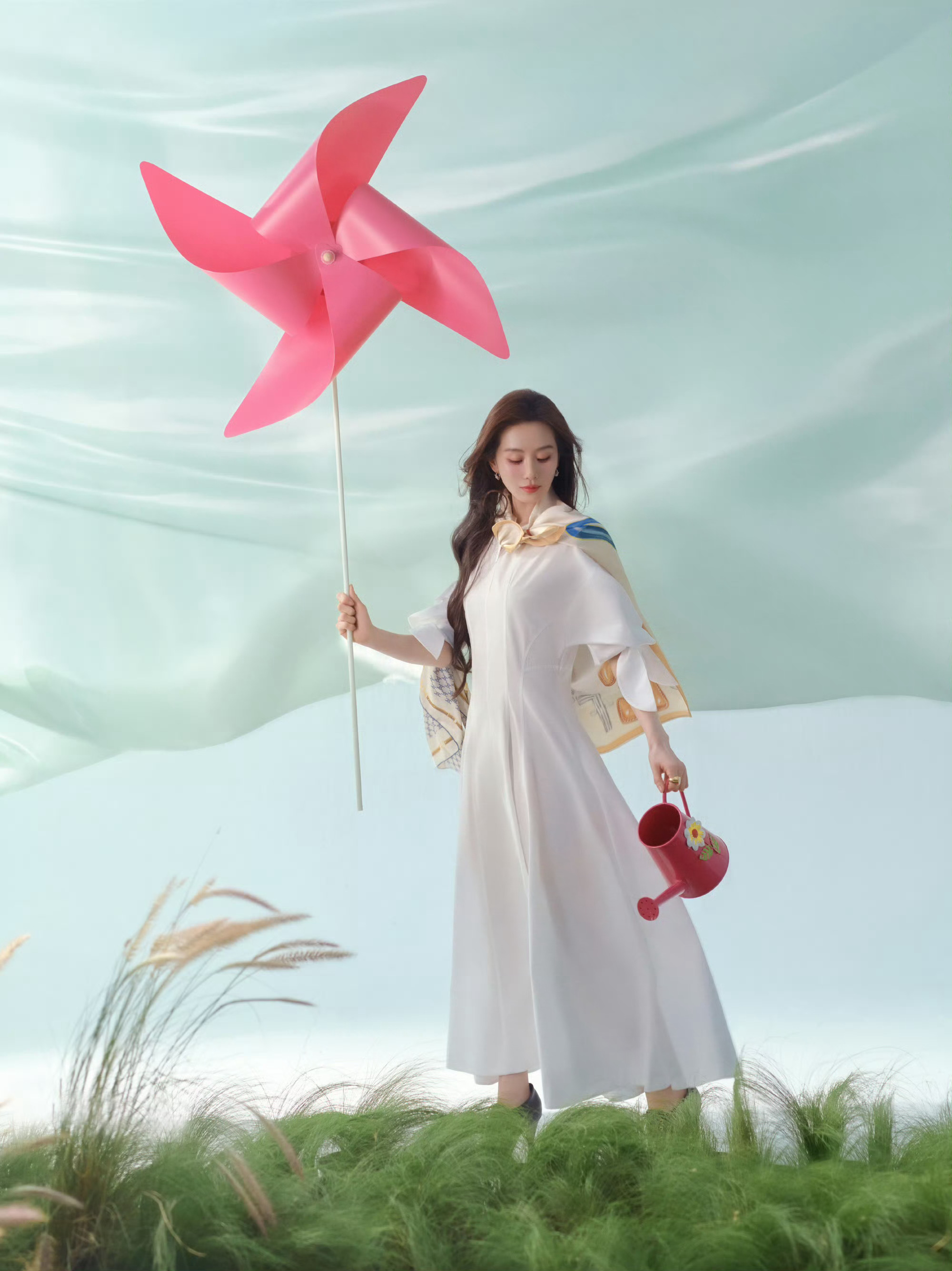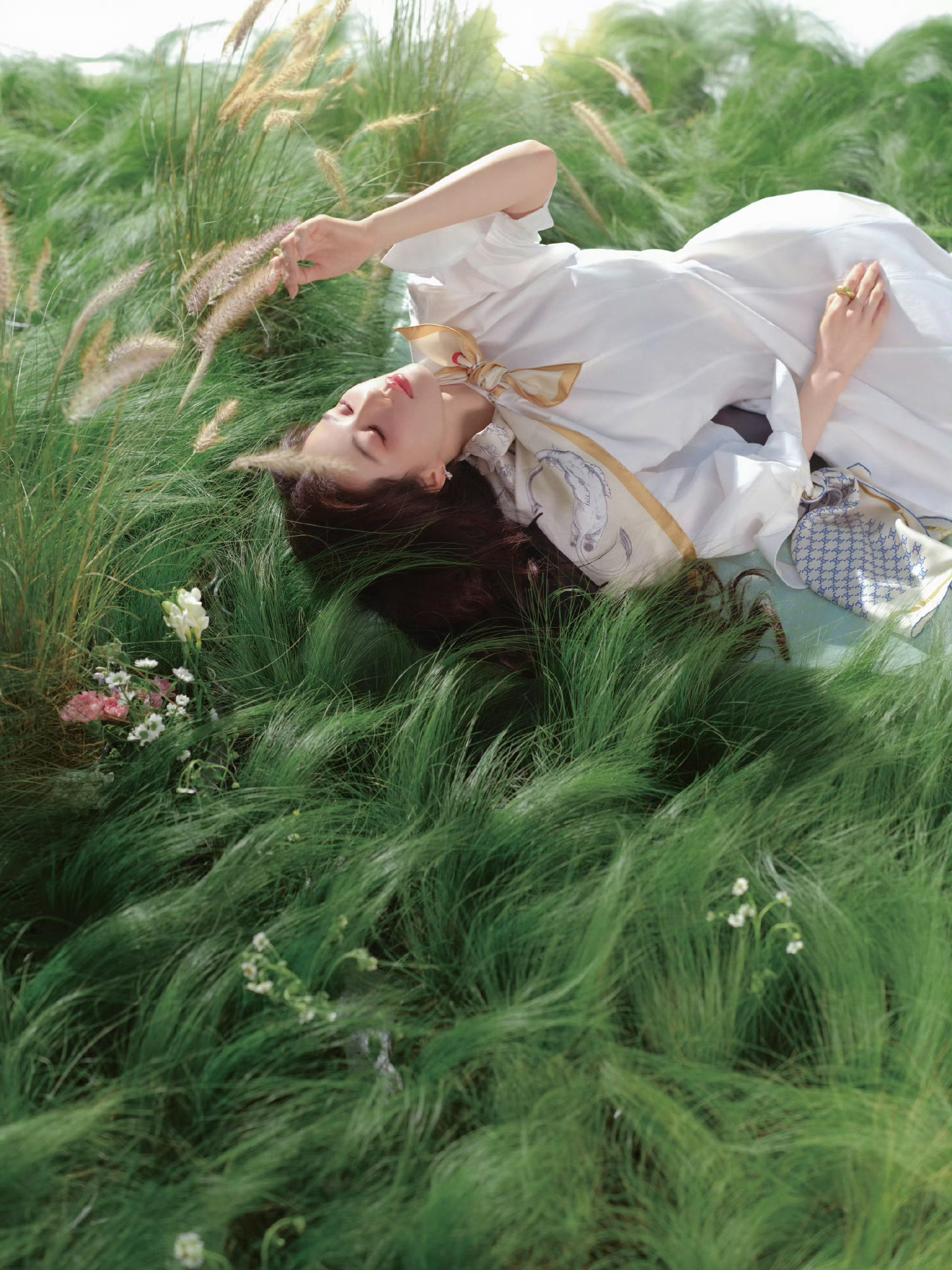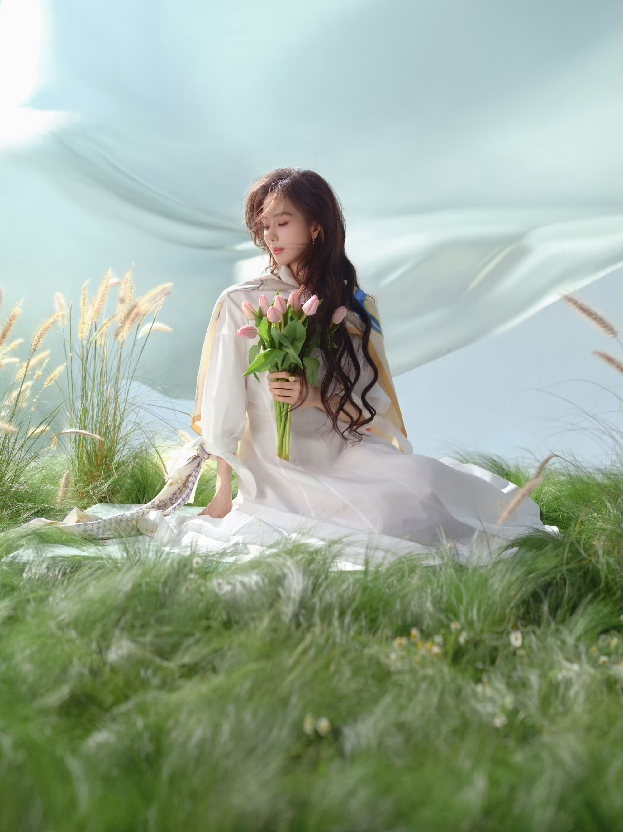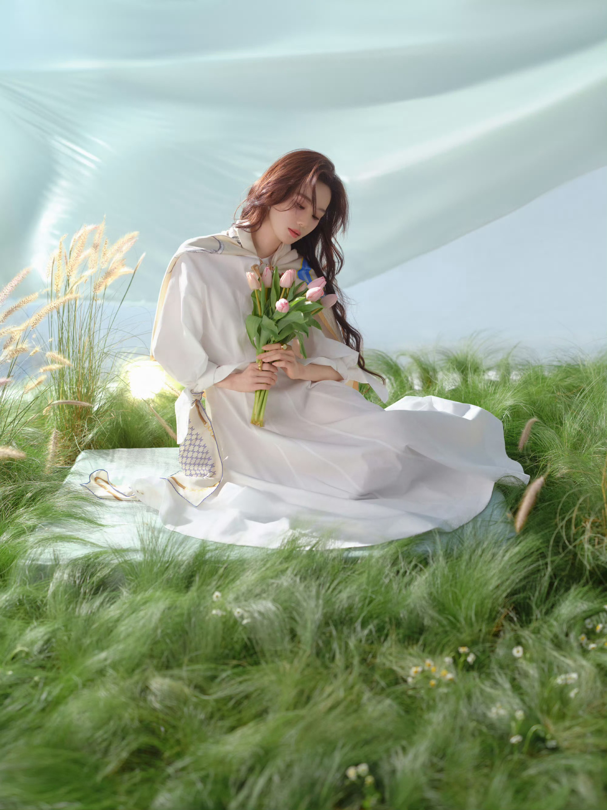 刘诗诗 生日写真图集,春风拂面而来,白裙配CELINE丝巾,明媚优雅,美丽如诗。