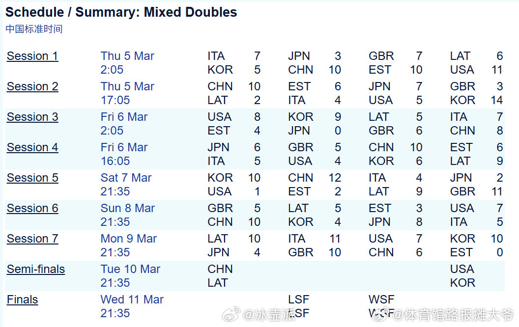 冰壶派米兰科尔蒂纳2026冬残奥会中国队轮椅冰壶 轮椅冰壶混双比赛四强出炉北京时