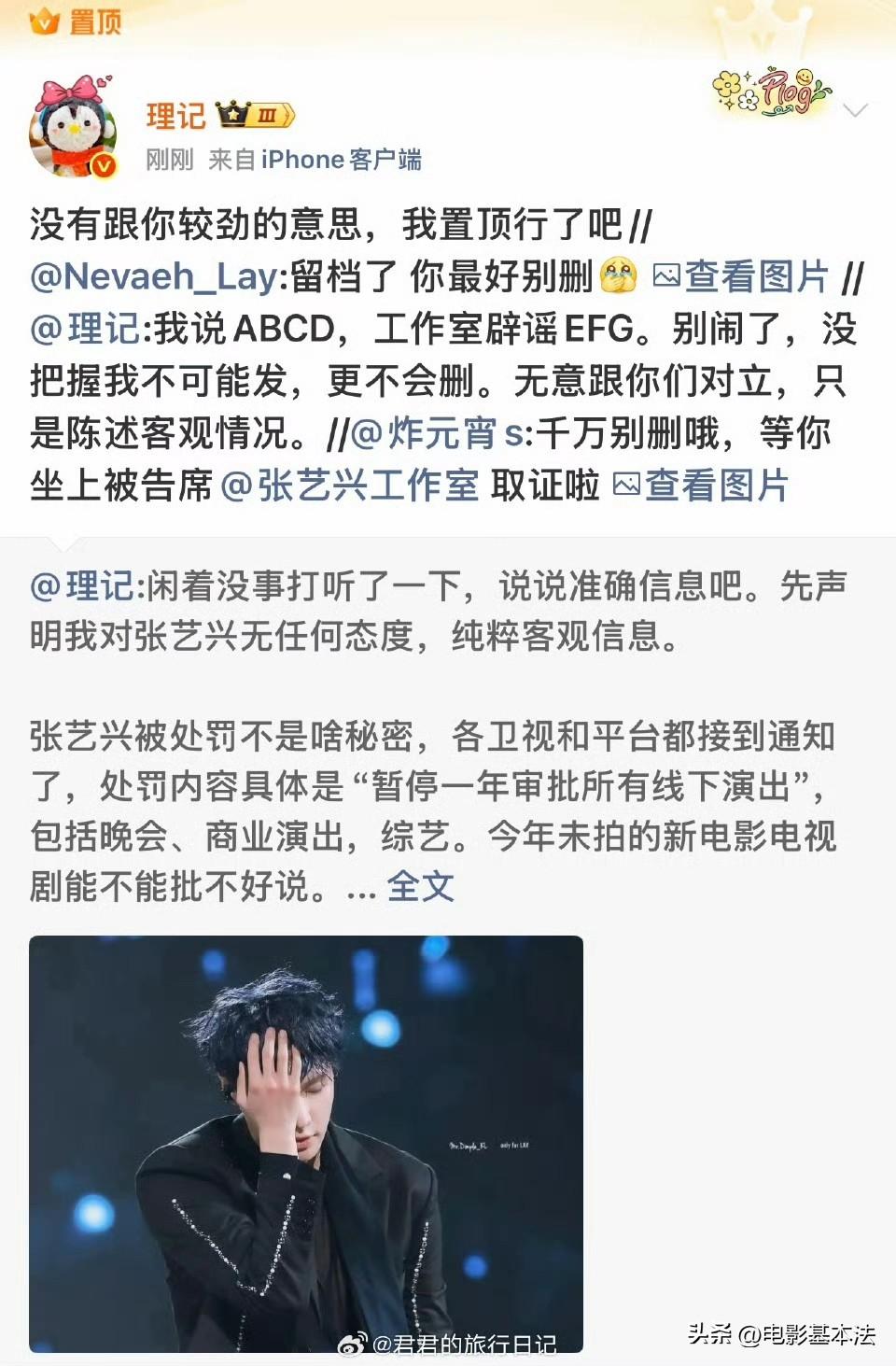 出事的顶流明星,究竟是不是传说中的张艺兴,我认为大概是。理由很简单,首先粉丝说的鼻炎手术不需要一年恢复,其次之前张艺兴一有事一直辟谣非常快,现在闹这么大还不辟谣感觉很真。 至于原因,坊间传闻是出国参加活动没有给单位报备,回来后头又铁和单位闹翻,而单位是国家级单位,对工作人员、旗下艺人肯定是有纪律要求的。