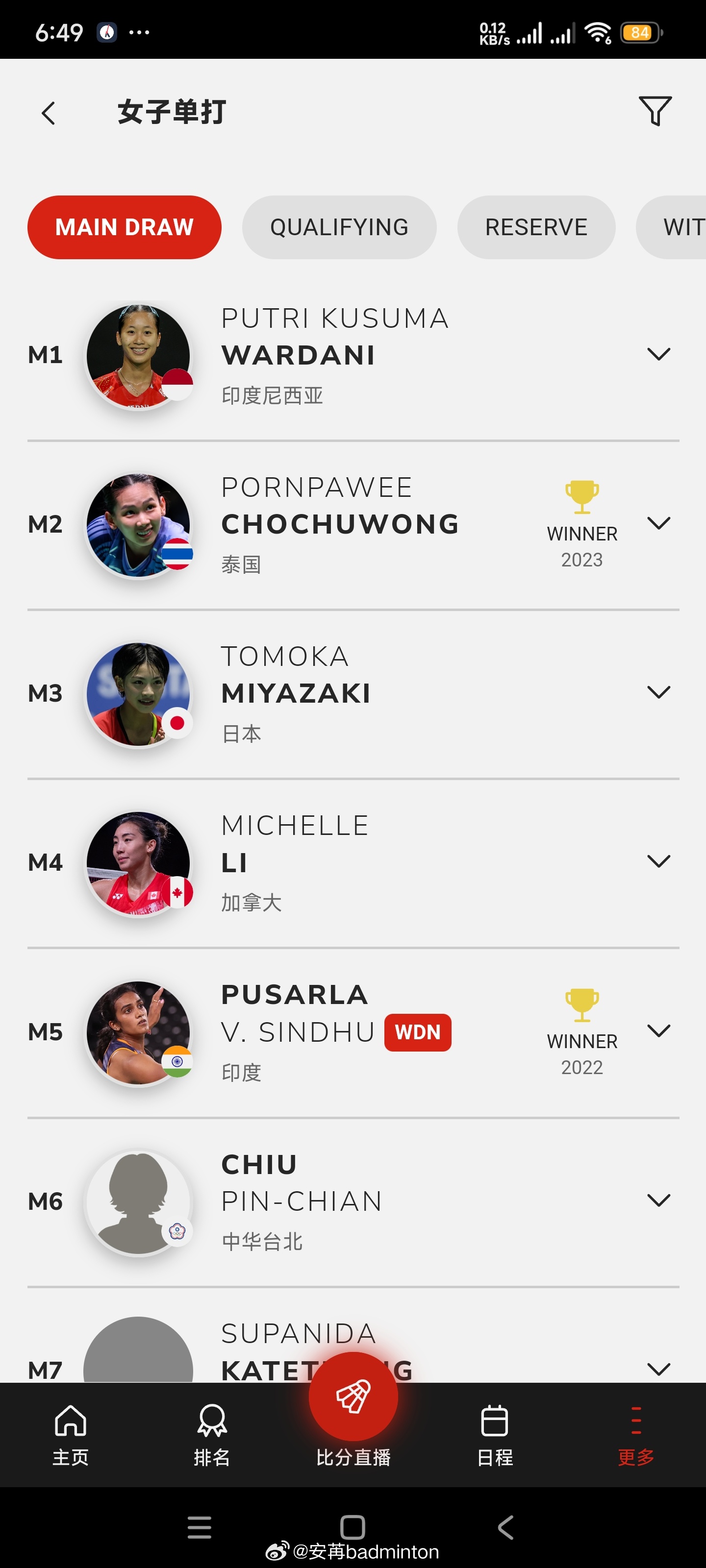 男单:林俊易、赖浩俊🇨🇦、桑卡尔🇮🇳女单:辛杜🇮🇳、张蓓雯🇺🇸、吉尔莫🏴󠁧󠁢󠁳󠁣󠁴󠁿、雅各布森🇩🇰男双:钟鸿健/海卡尔🇲🇾、谢炜杰/雷声豪🇲🇾女双:五十岚有纱/志田千阳🇯🇵、伊斯亚纳/林加尼🇮🇩、麦克菲森/托兰斯🏴󠁧󠁢󠁳󠁣󠁴󠁿混双:马蒂亚斯/博尔🇩🇰、塞蒂亚布迪/梅拉蒂🇮🇩